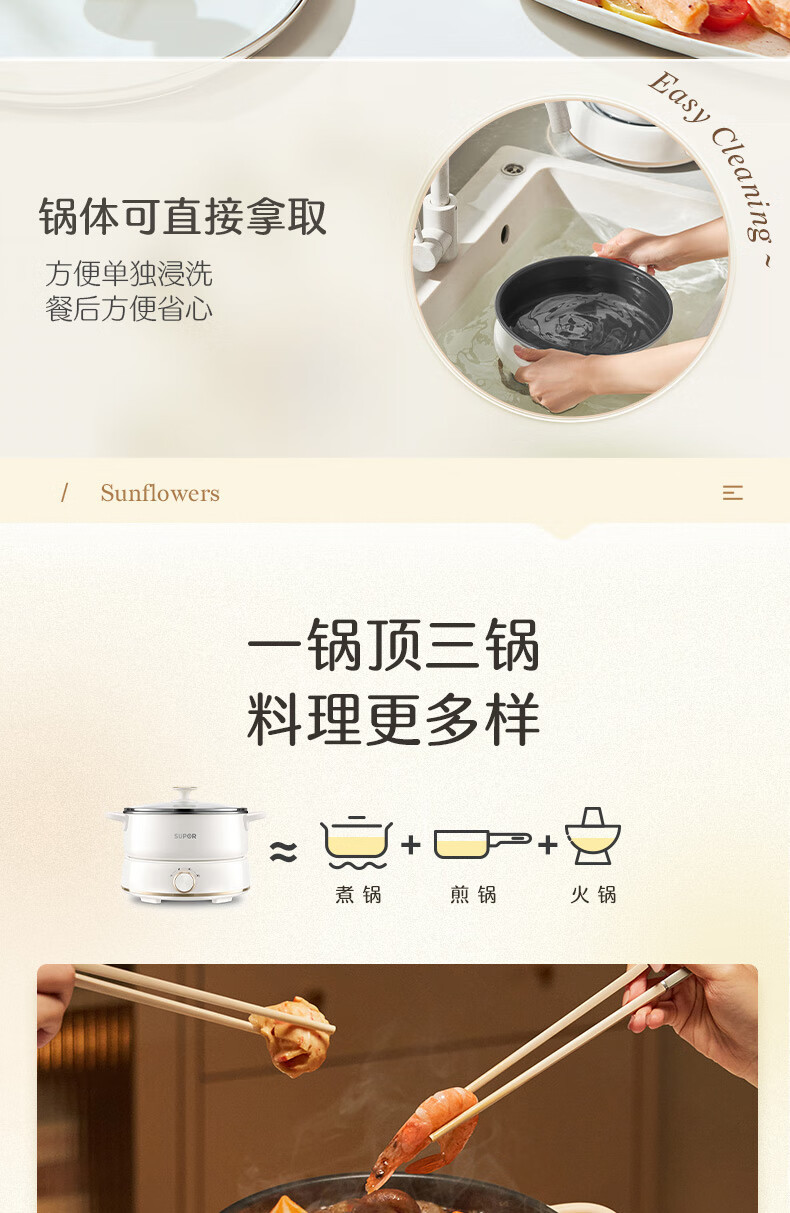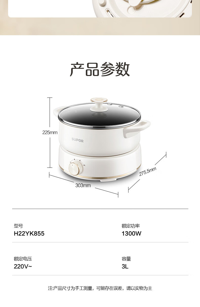 수포르 전기 냄비 다기능 전기 조리기 분리형 가정용 전기 냄비 다목적 냄비 H22YK855 가전제품