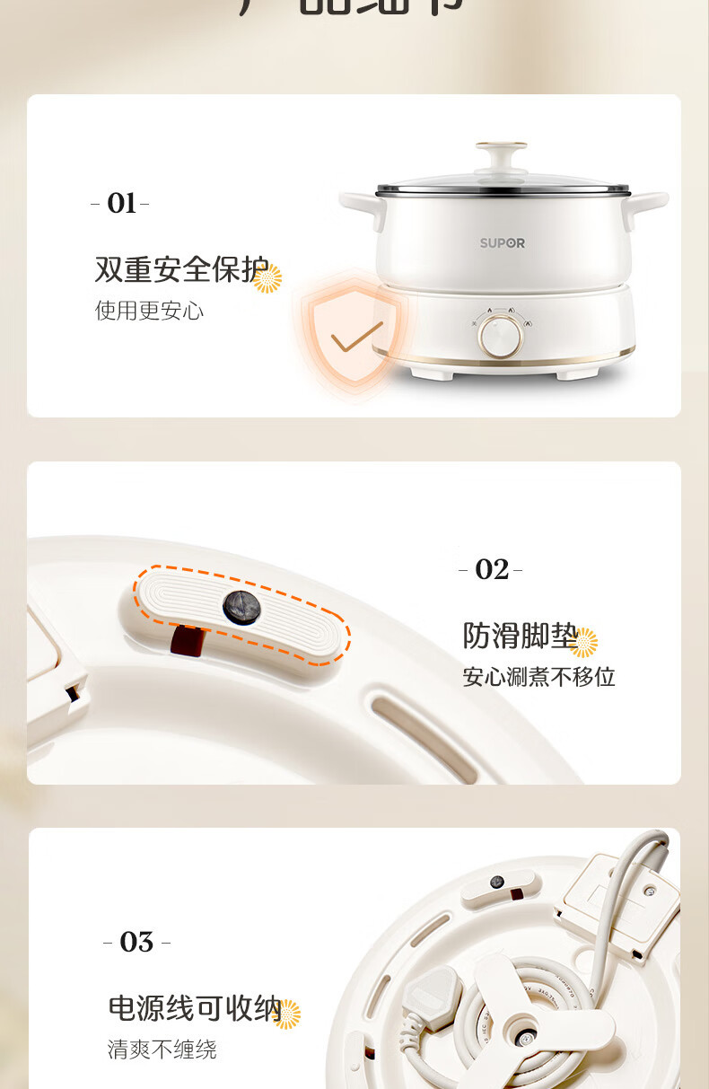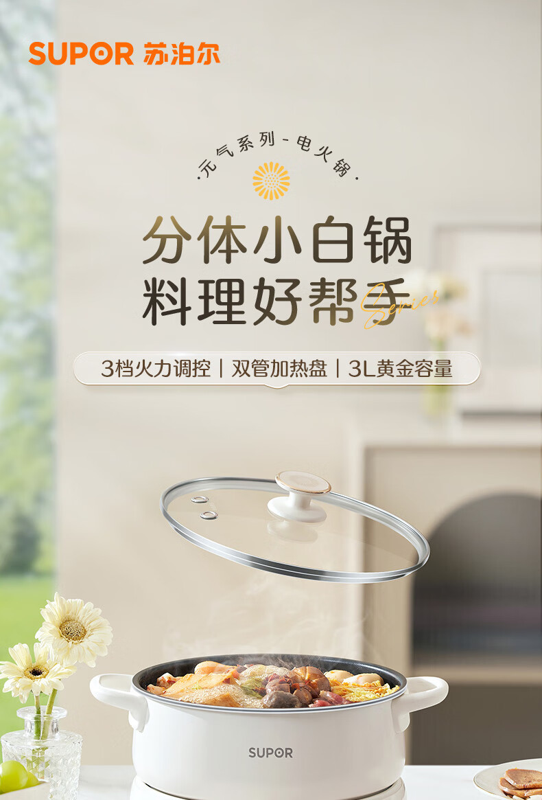 수포르 전기 냄비 다기능 전기 조리기 분리형 가정용 전기 냄비 다목적 냄비 H22YK855 가전제품스토어 가기