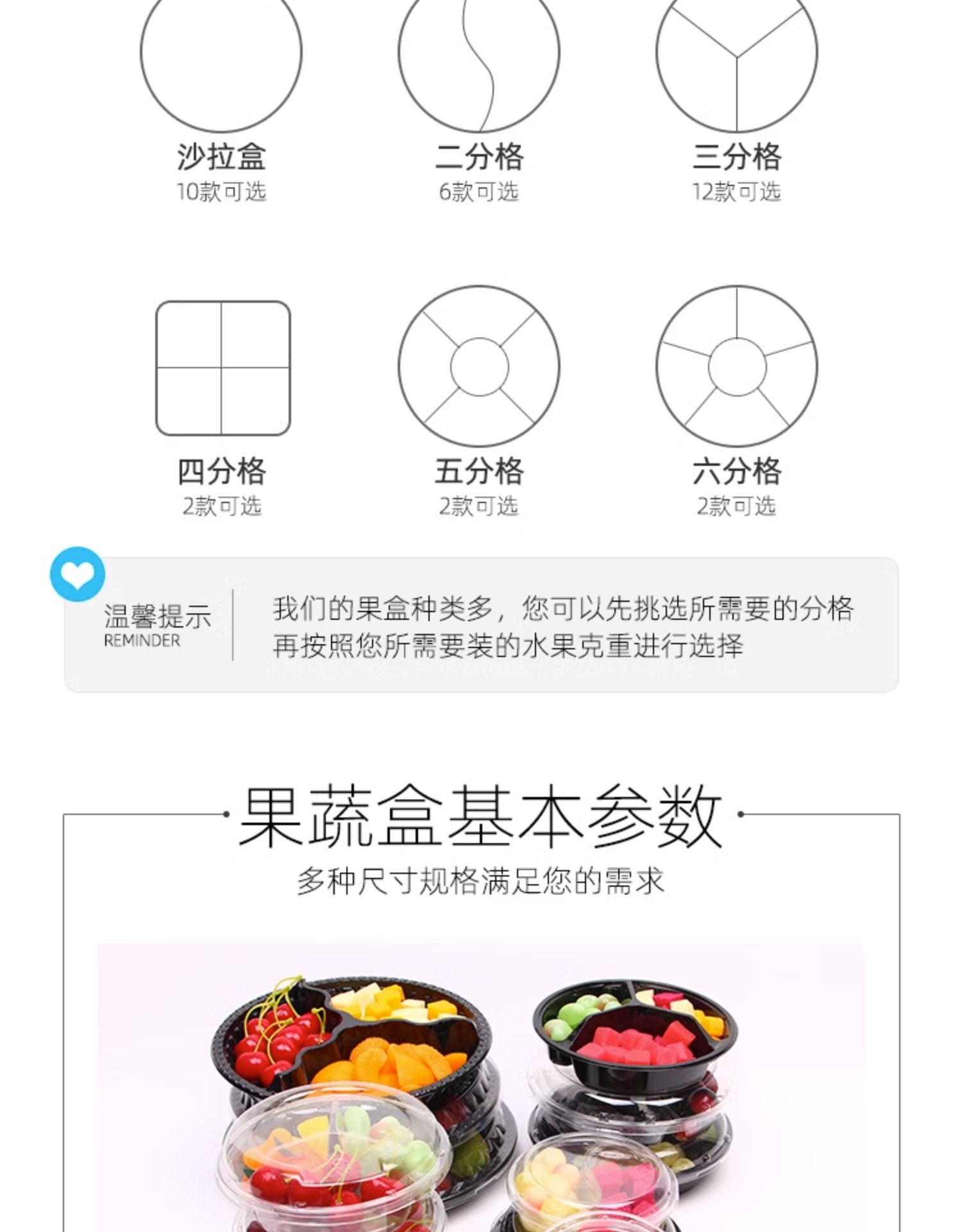 일회용 과일 상자 플라스틱 투명 샐러드 접시 테이크 아웃 신선한 과일 절단 과일 포장 상자 둥근 과일 접시스토어 가기