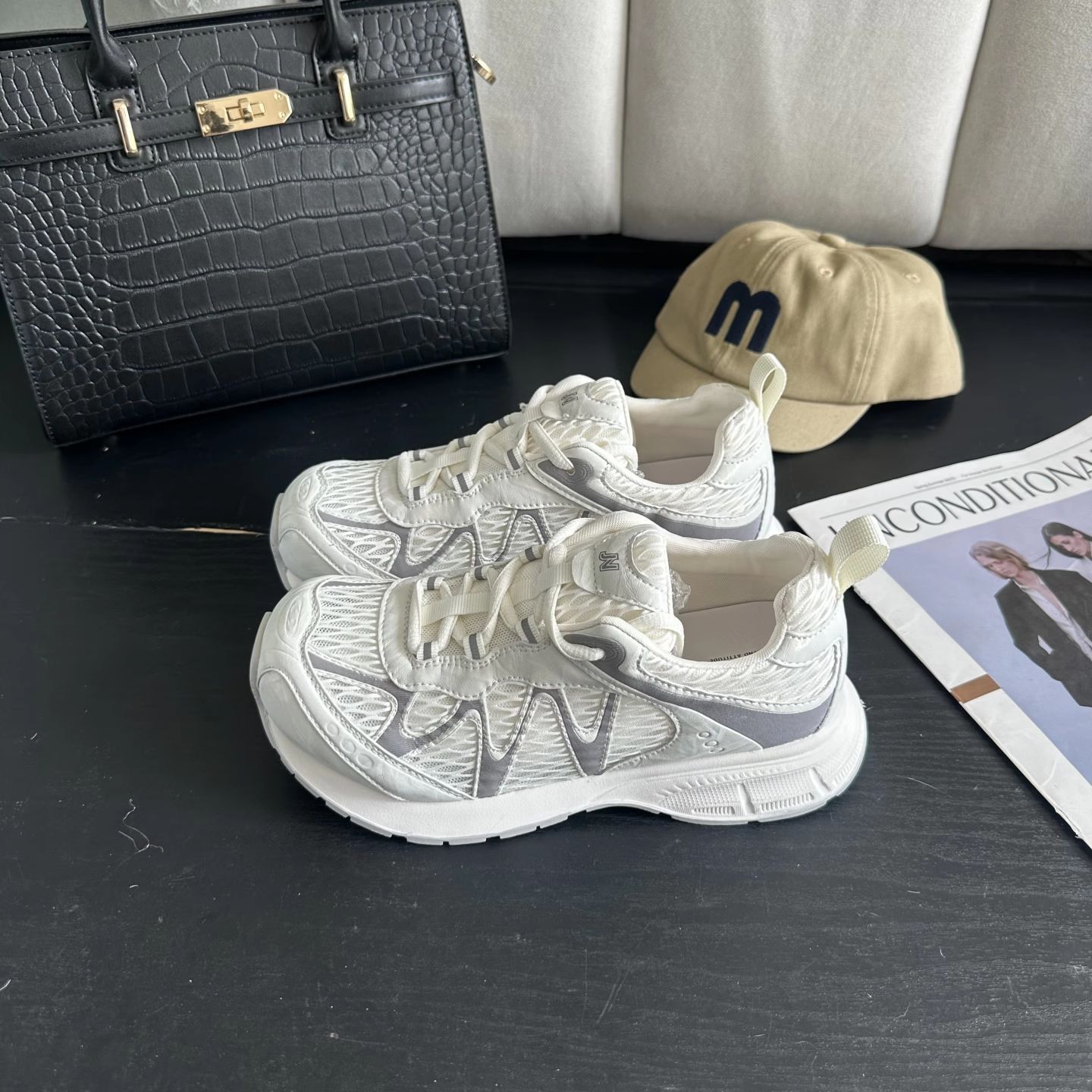 여성을위한 정품 가죽 경량 메쉬 통기성 야외 하이킹 신발 2025 여름 새로운 한국어 버전 Mijia 스포츠 및 레저 신발