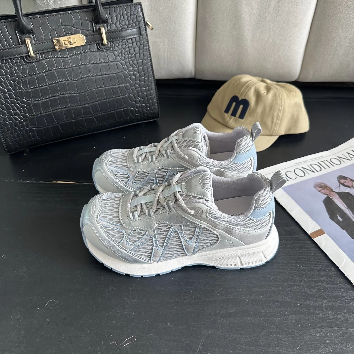 여성을위한 정품 가죽 경량 메쉬 통기성 야외 하이킹 신발 2025 여름 새로운 한국어 버전 Mijia 스포츠 및 레저 신발스토어 가기