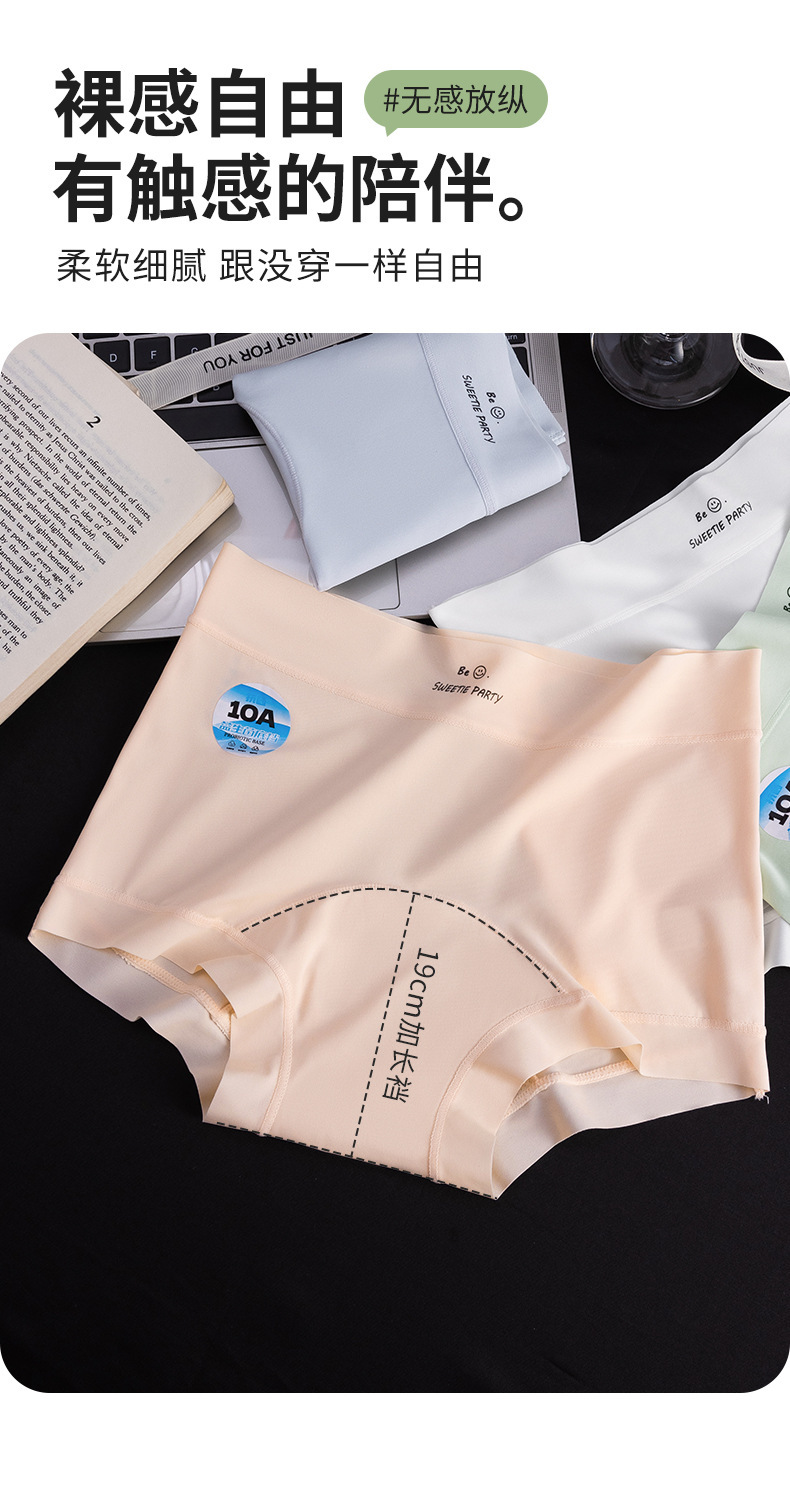 여름 얼음 실크 여성용 중간 허리 이음매없는 엉덩이 커버 10A 확장 가랑이 프로 바이오틱 항균 누드 대형 여성용 복서 반바지스토어 가기
