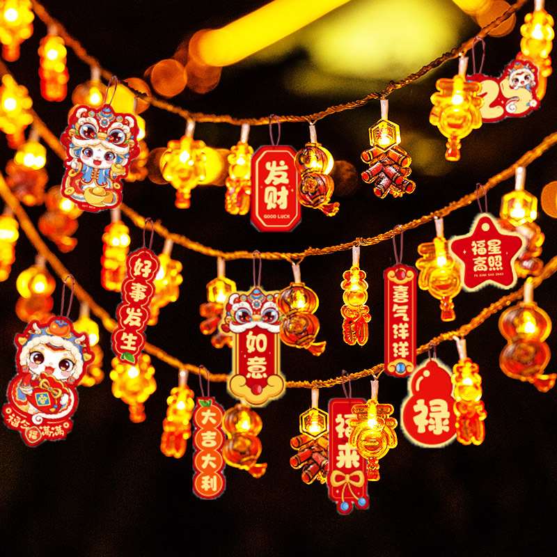 새해 조명 2025 새해 발코니 펜던트 봄 축제 축복 깜박이는 문자열 조명 led 랜턴 분위기 장식 조명 스트립스토어 가기