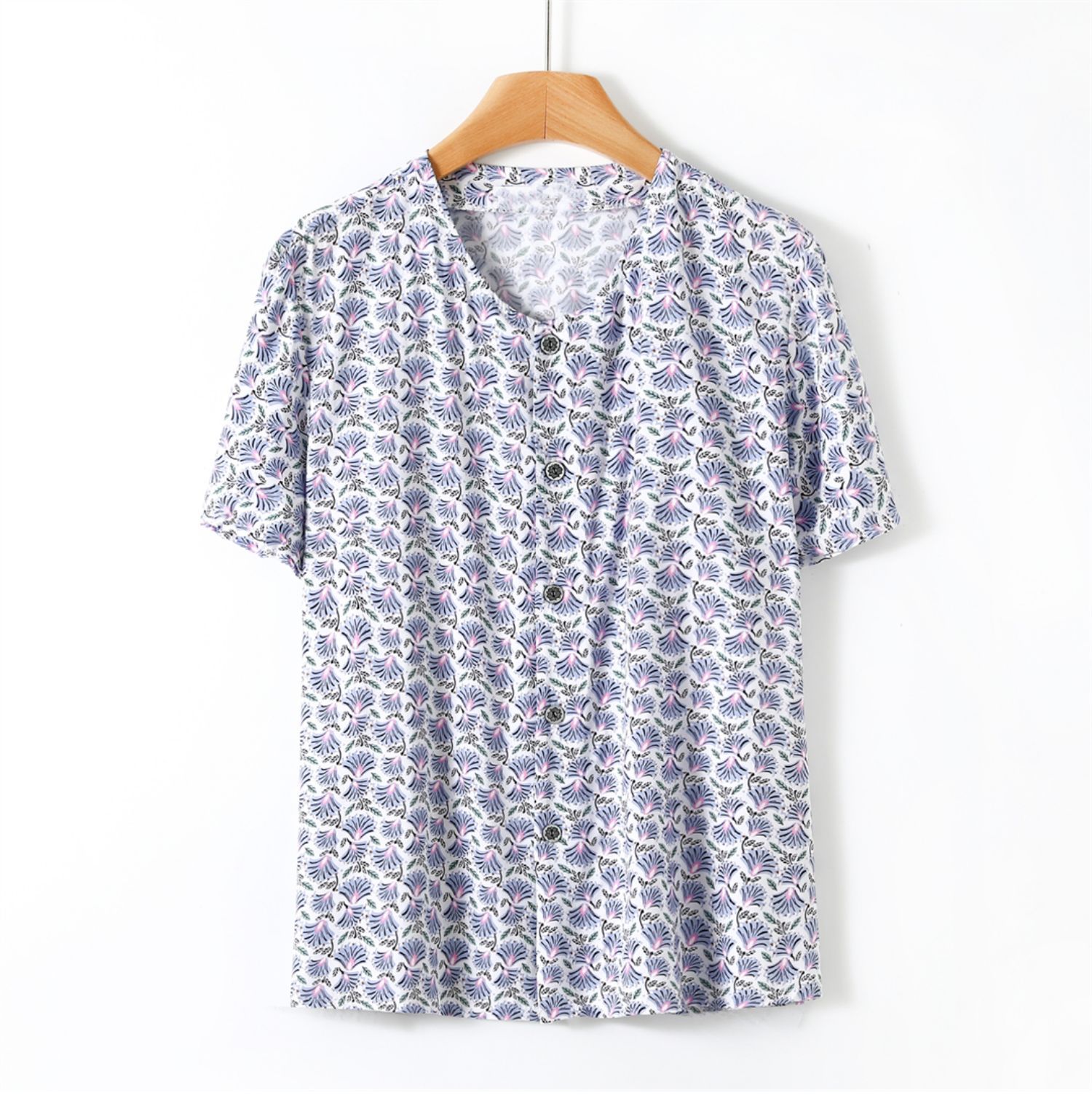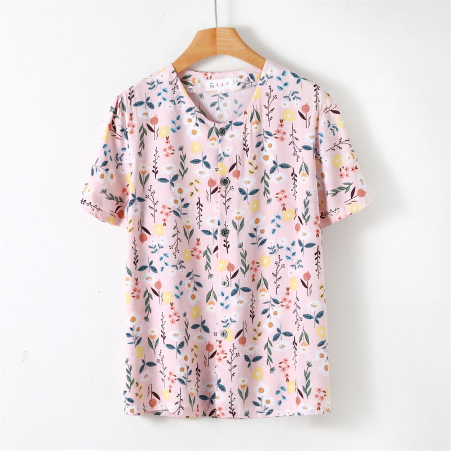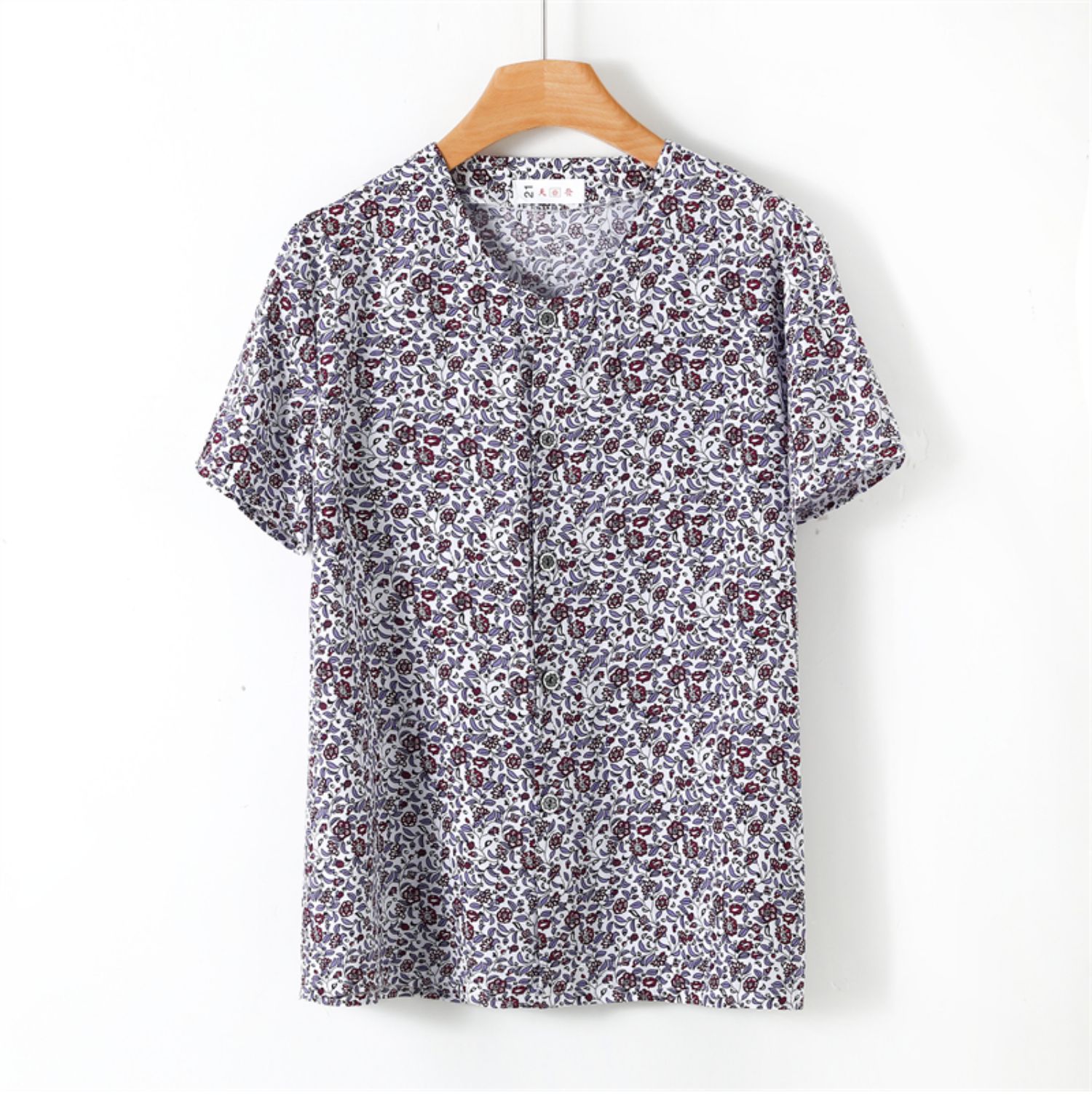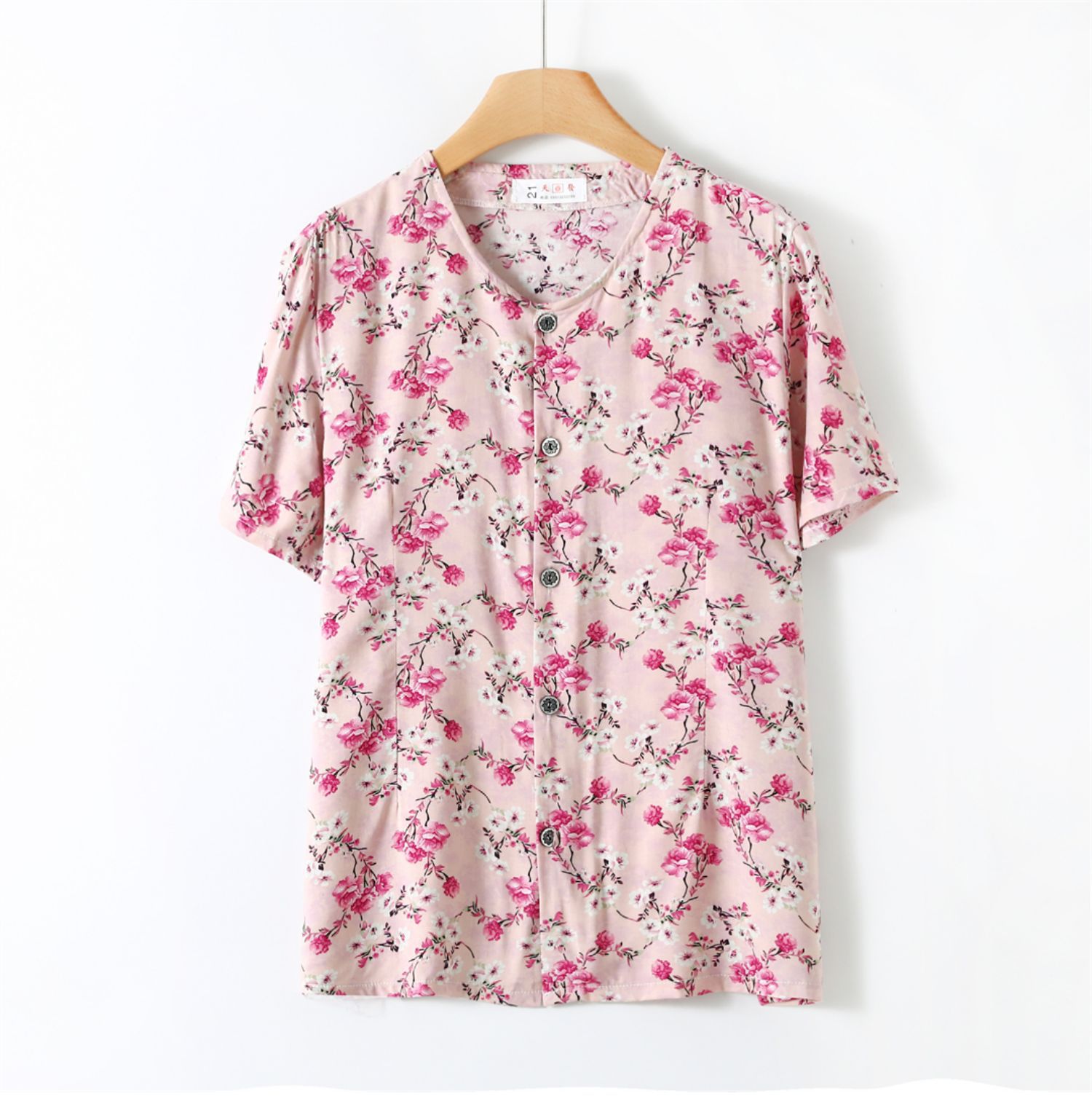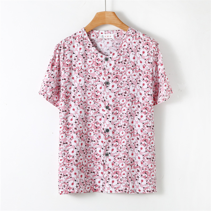 중년 및 노인 카디건 여성 여름 얇은 어머니의 면 실크 반팔 느슨한 대형 인공 면 셔츠 잠옷 탑
