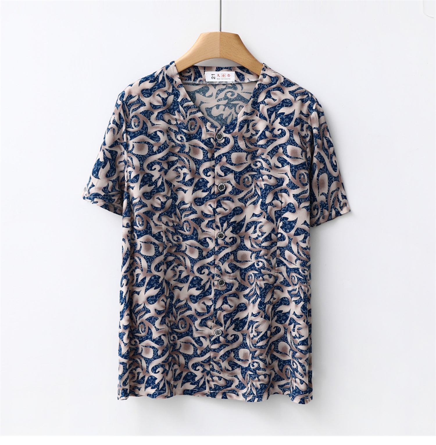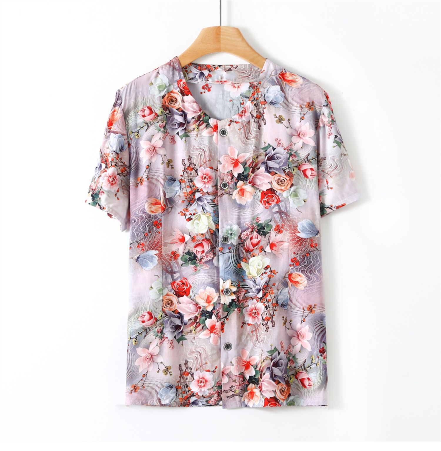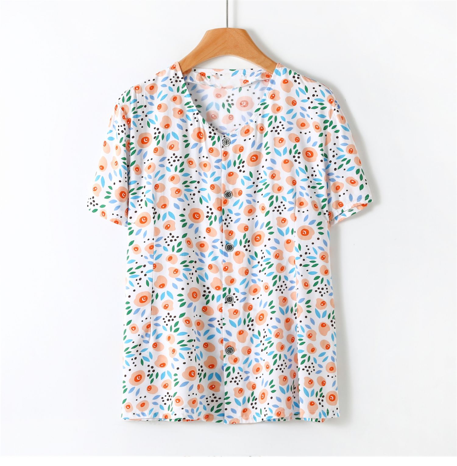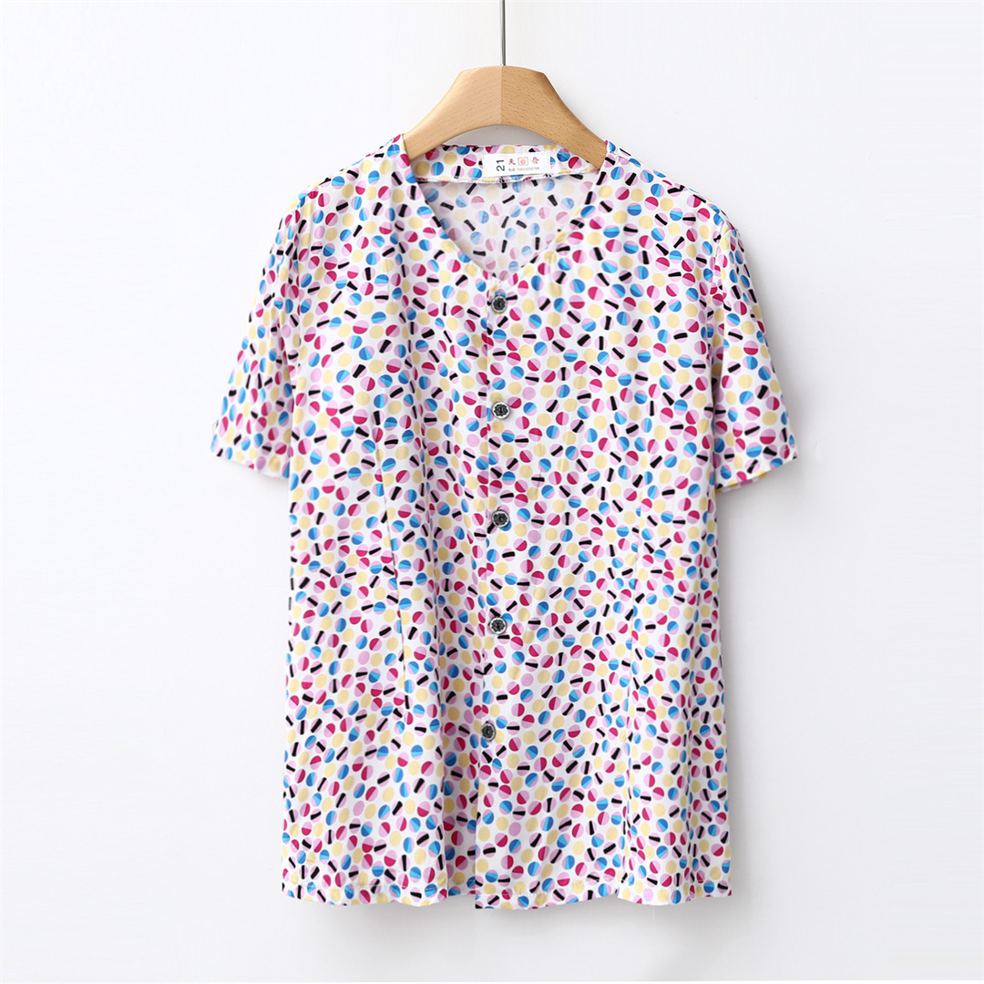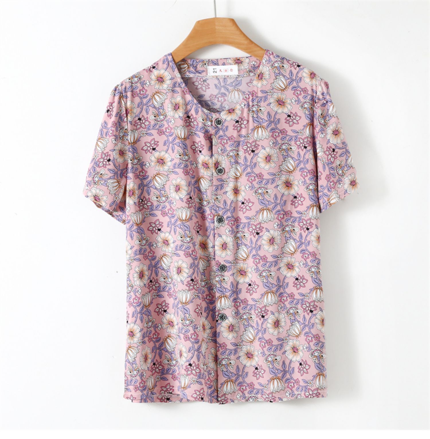 중년 및 노인 카디건 여성 여름 얇은 어머니의 면 실크 반팔 느슨한 대형 인공 면 셔츠 잠옷 탑