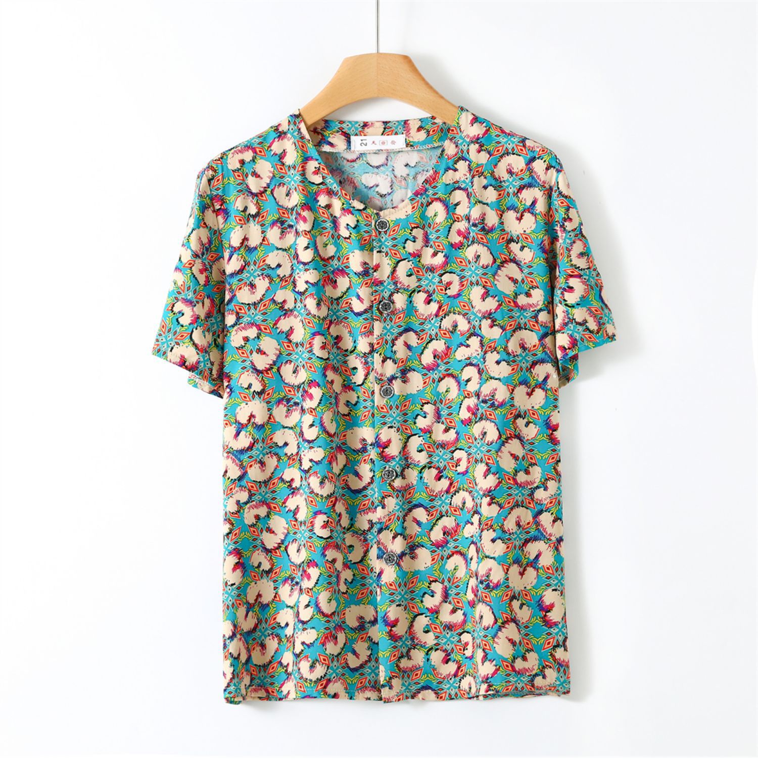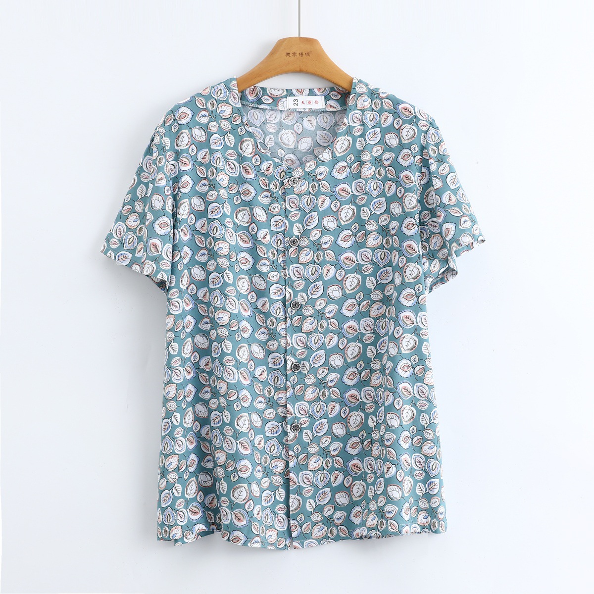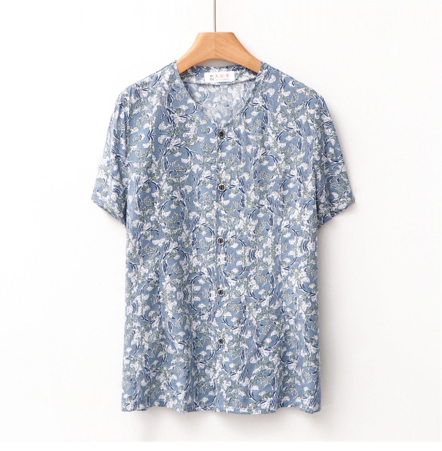 중년 및 노인 카디건 여성 여름 얇은 어머니의 면 실크 반팔 느슨한 대형 인공 면 셔츠 잠옷 탑스토어 가기
