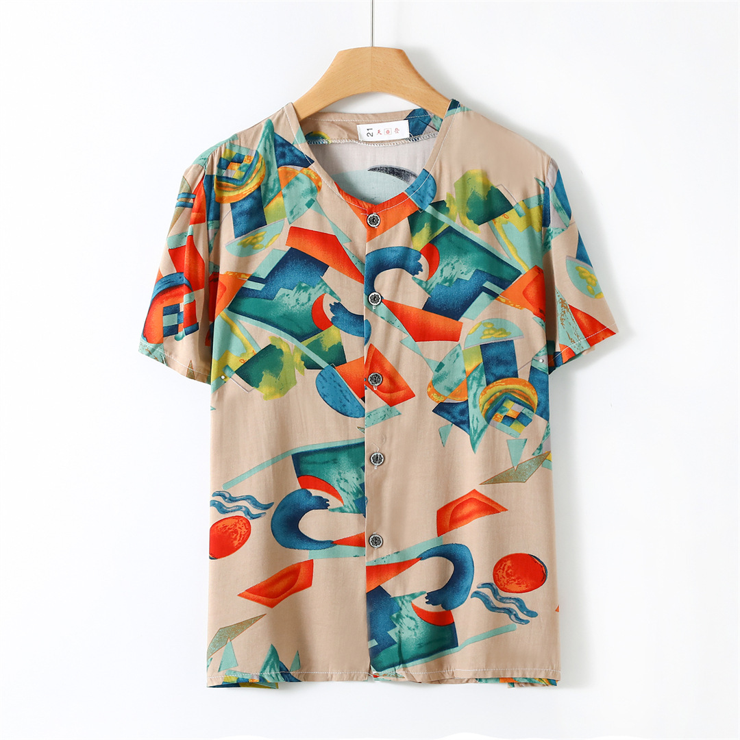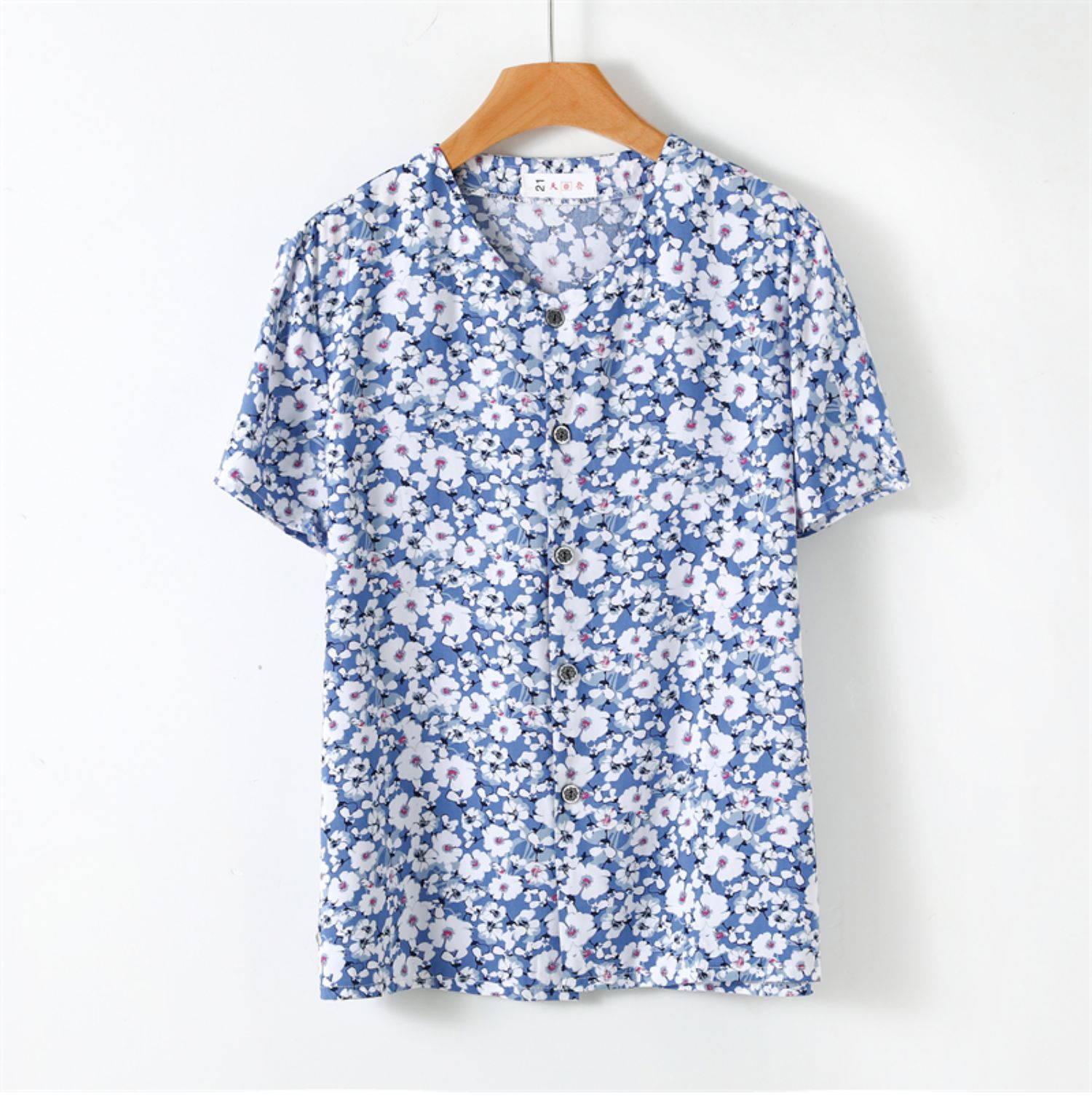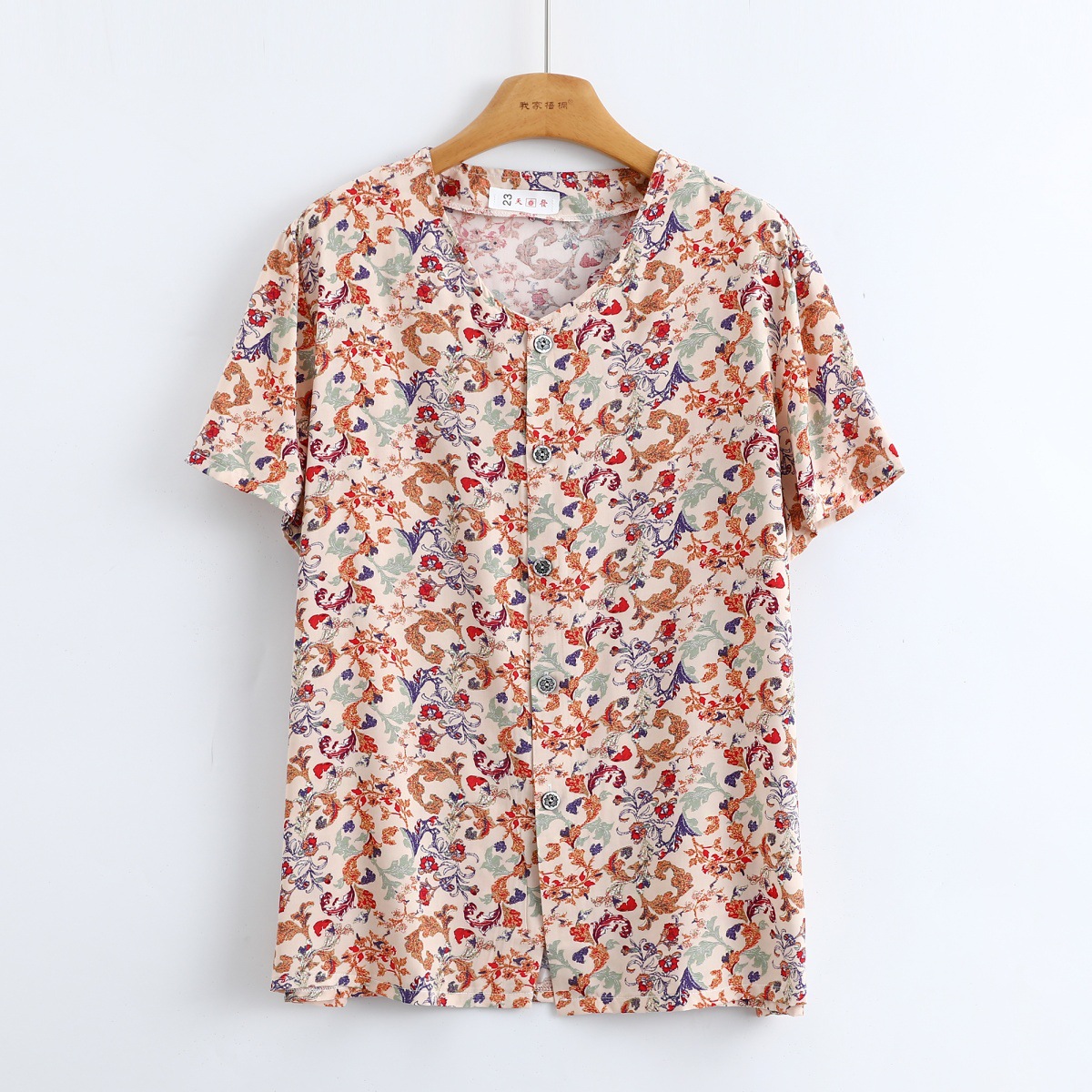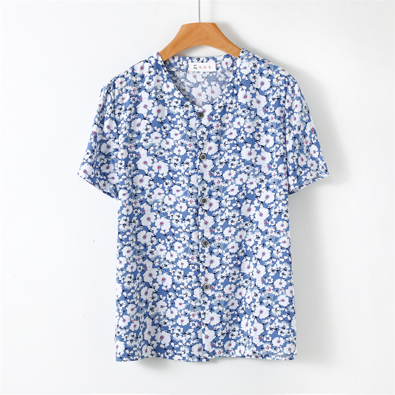 중년 및 노인 카디건 여성 여름 얇은 어머니의 면 실크 반팔 느슨한 대형 인공 면 셔츠 잠옷 탑스토어 가기