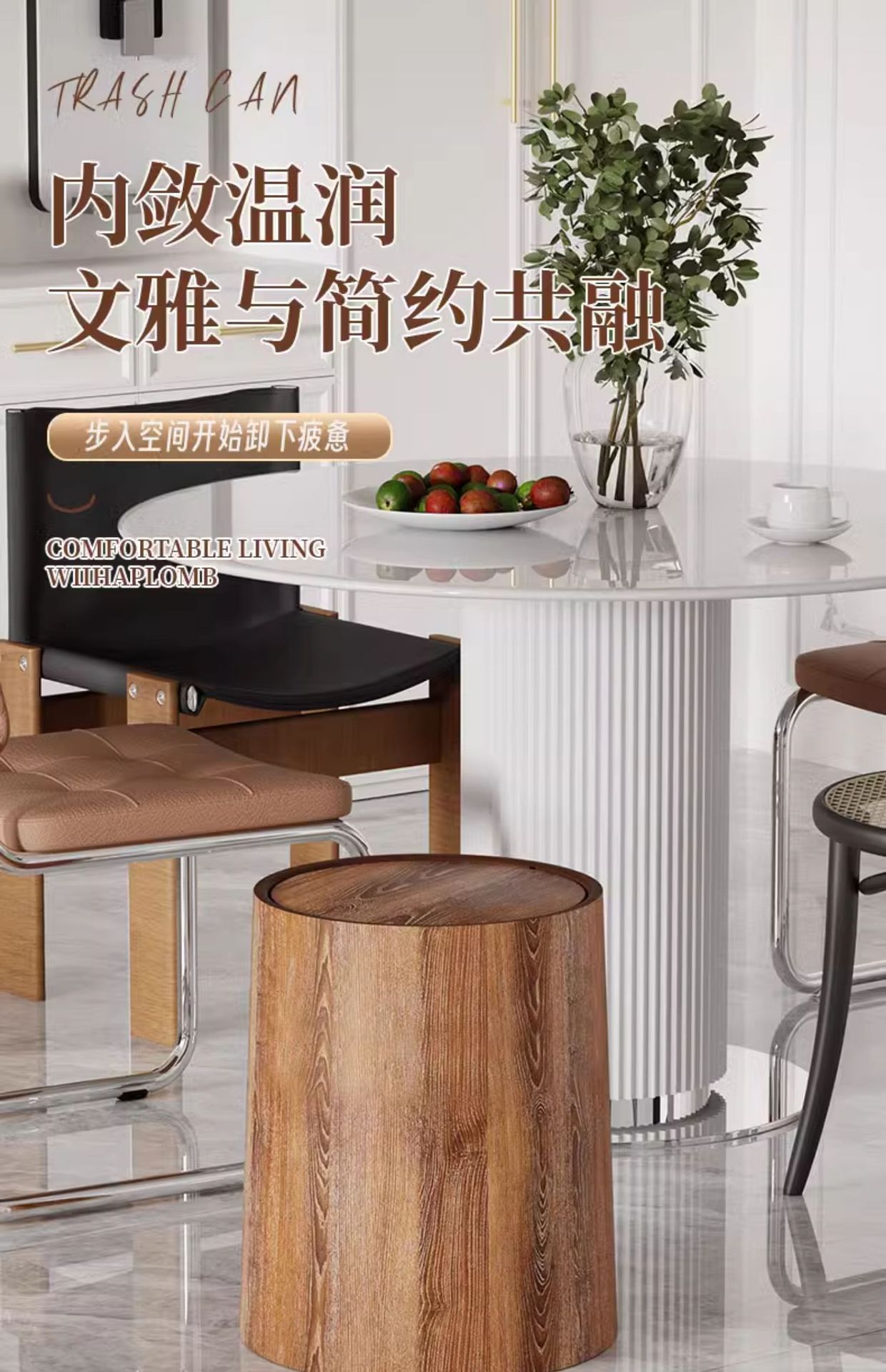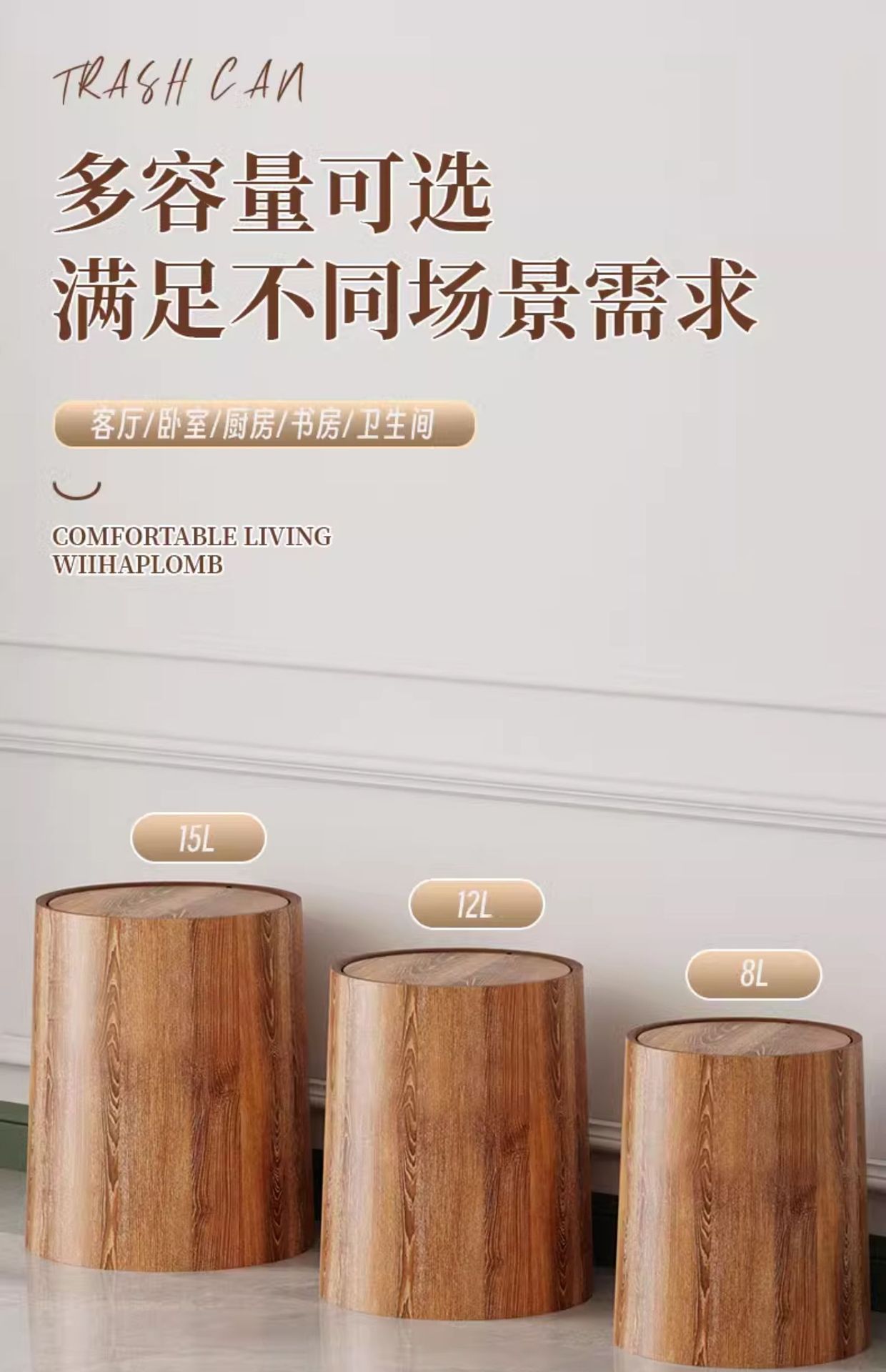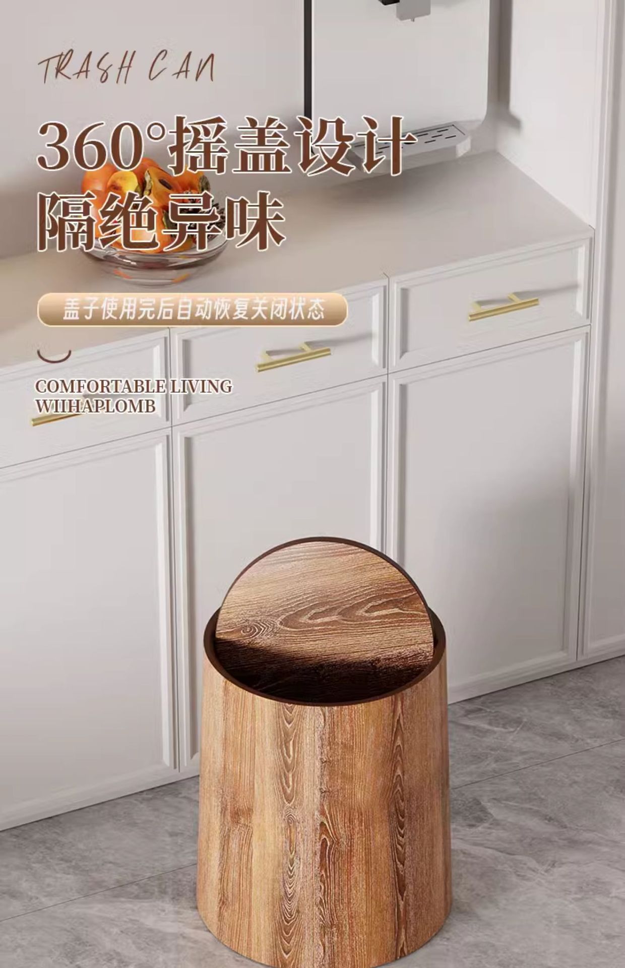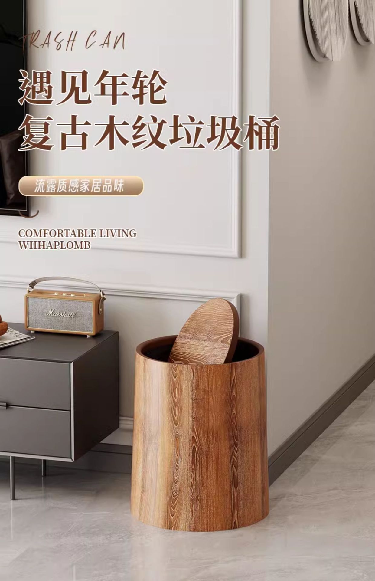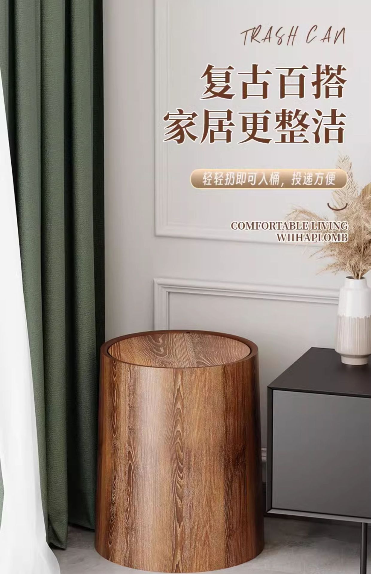호텔 종이 바구니 플립 커버 복고풍 사무실 모조 상업용 중국 스타일 대용량 쓰레기통 나뭇결 홈 필수품스토어 가기