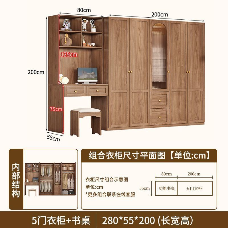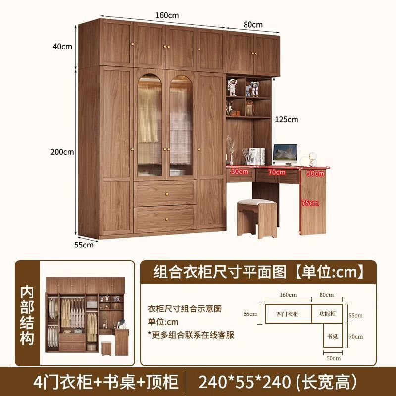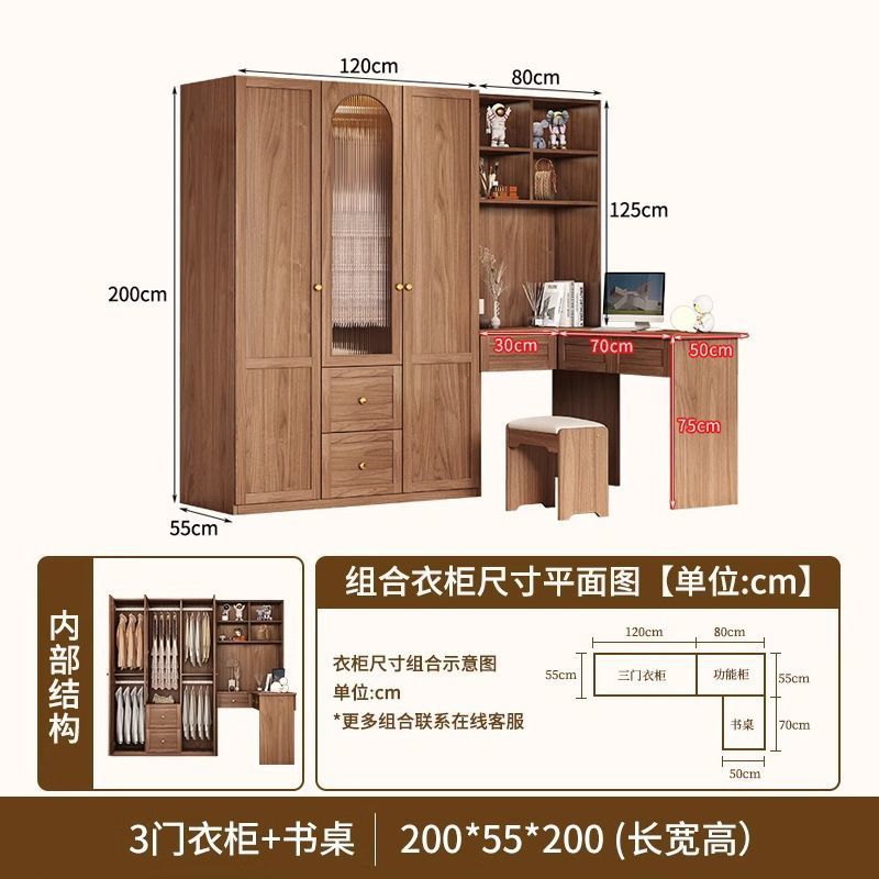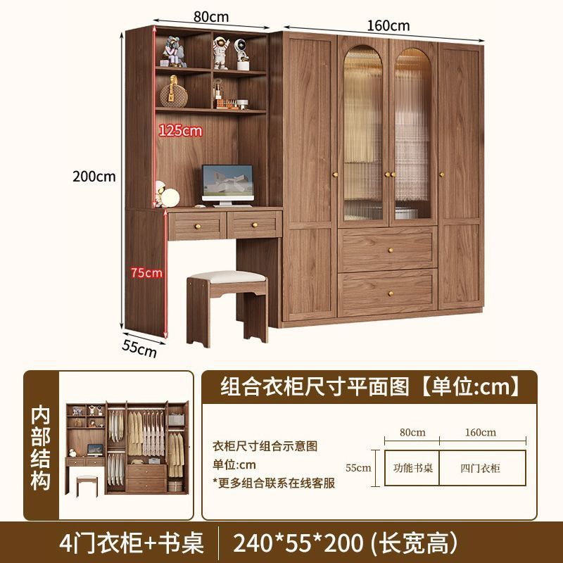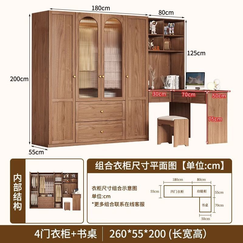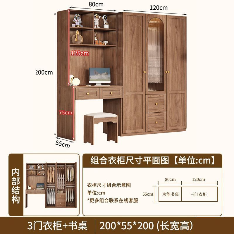 중세 스타일 옷장 책상과 화장대가 있는 3도어 및 4도어 옷장 침실 홈 소형 아파트 조합 옷장스토어 가기
