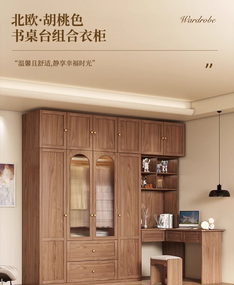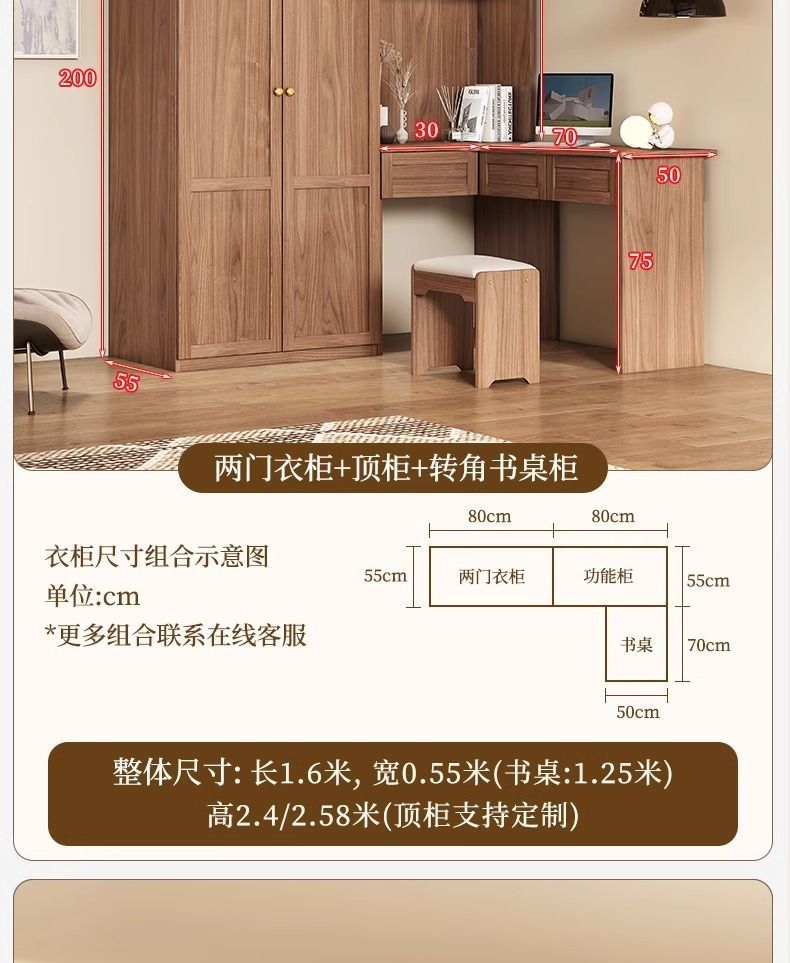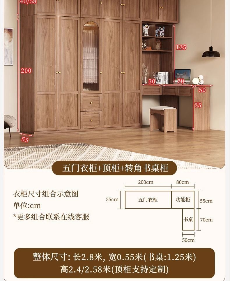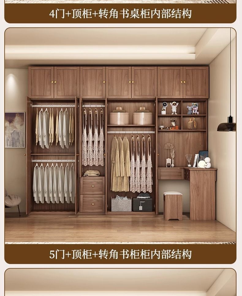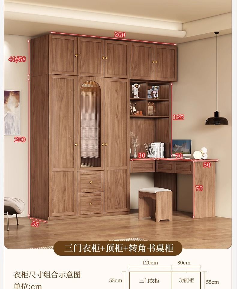 중세 스타일 옷장 책상과 화장대가 있는 3도어 및 4도어 옷장 침실 홈 소형 아파트 조합 옷장스토어 가기