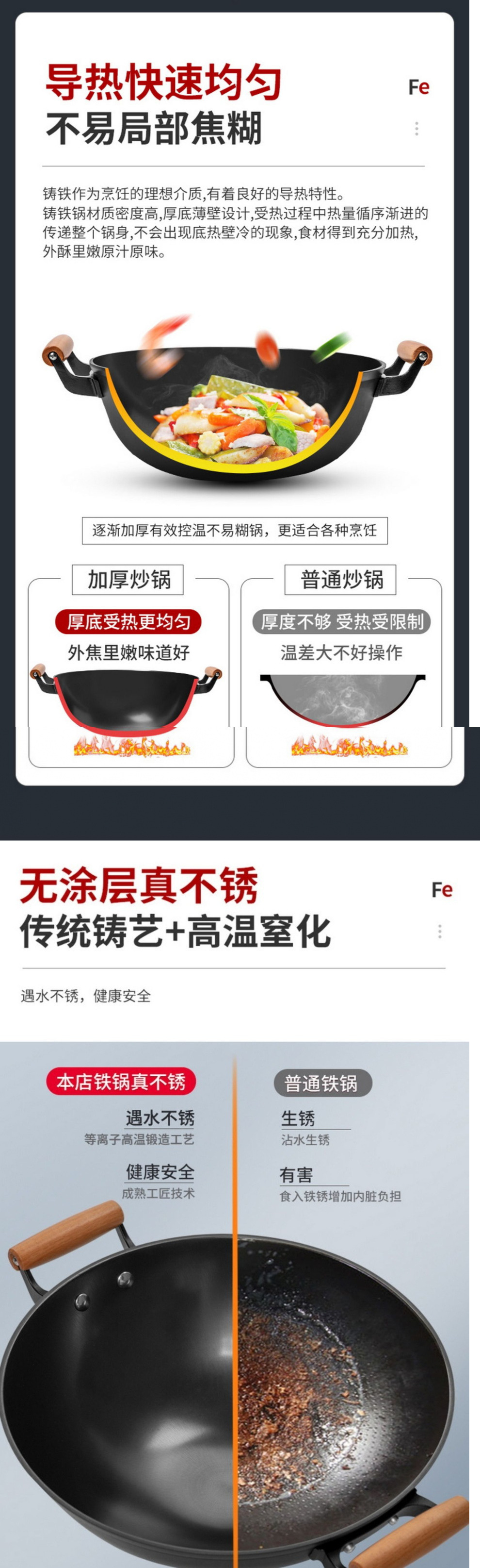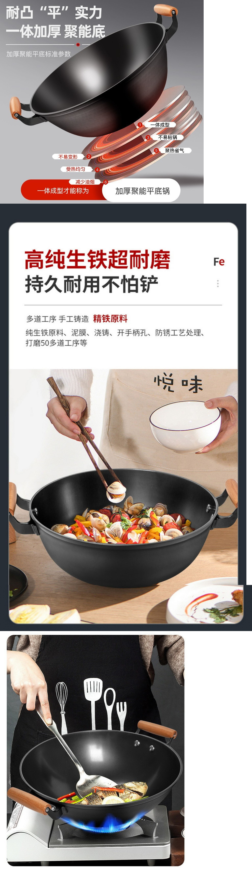 구식 평평한 스튜 냄비 주철 냄비 가정용 대형 인덕션 가스 스토브 양귀 철 냄비 코팅되지 않은 요리 냄비스토어 가기