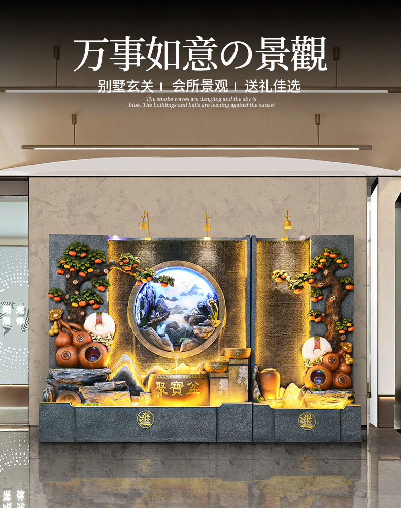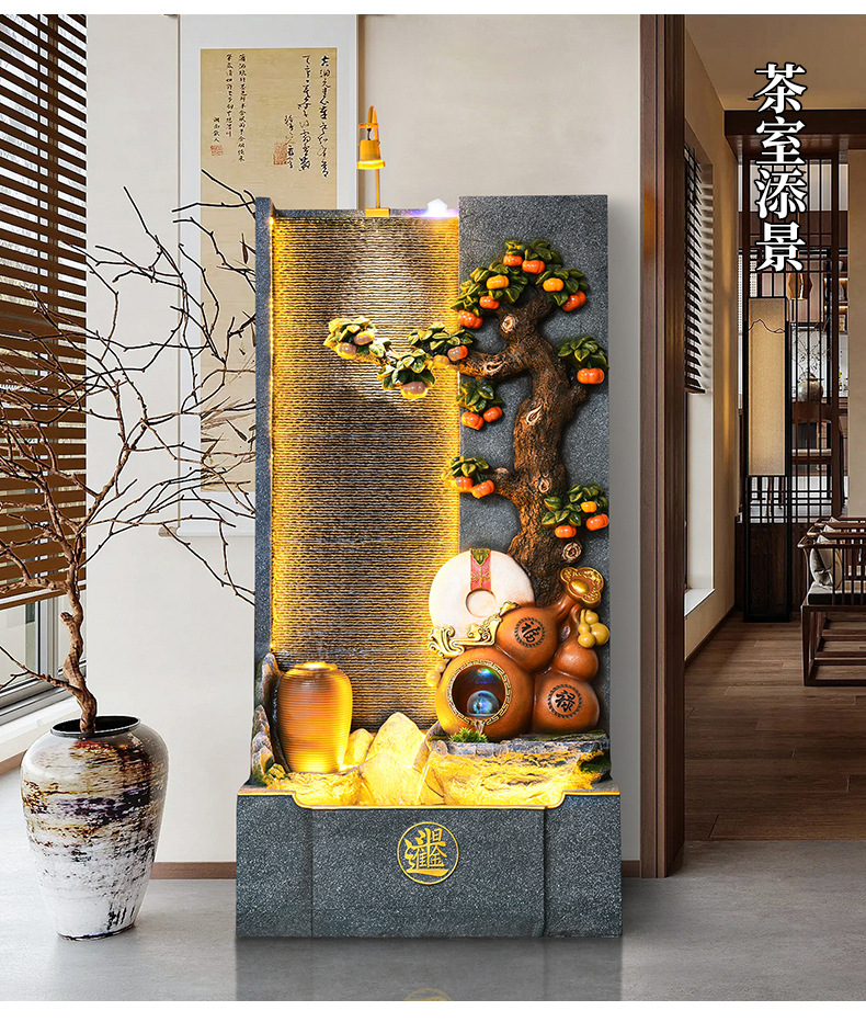 가짜 바위 흐르는 물 분수 거실 사무실 장식 풍경 회사 행운의 물 커튼 벽 순환 물 장식품 바닥스토어 가기