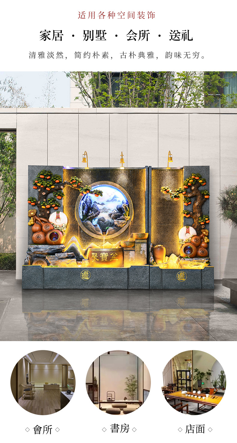 가짜 바위 흐르는 물 분수 거실 사무실 장식 풍경 회사 행운의 물 커튼 벽 순환 물 장식품 바닥