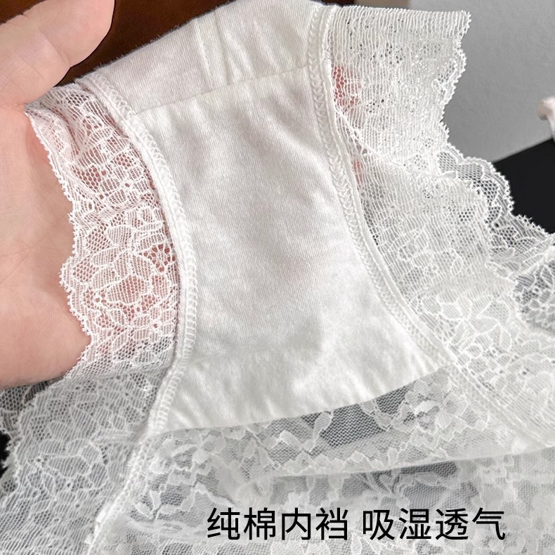 여성용 일본식 달콤한 레이스 미드 하이 웨이스트 속옷, 통기성, 섹시한 엉덩이 커버 여성용 팬티, 면 가랑이, 대형 사이즈스토어 가기