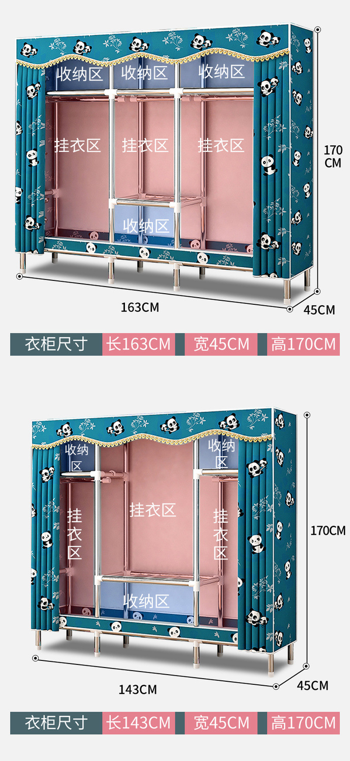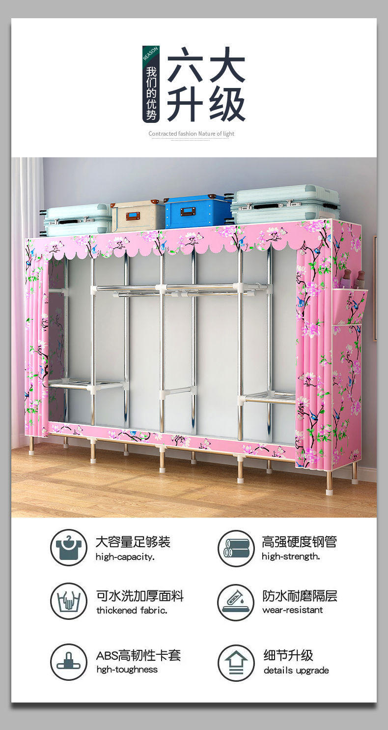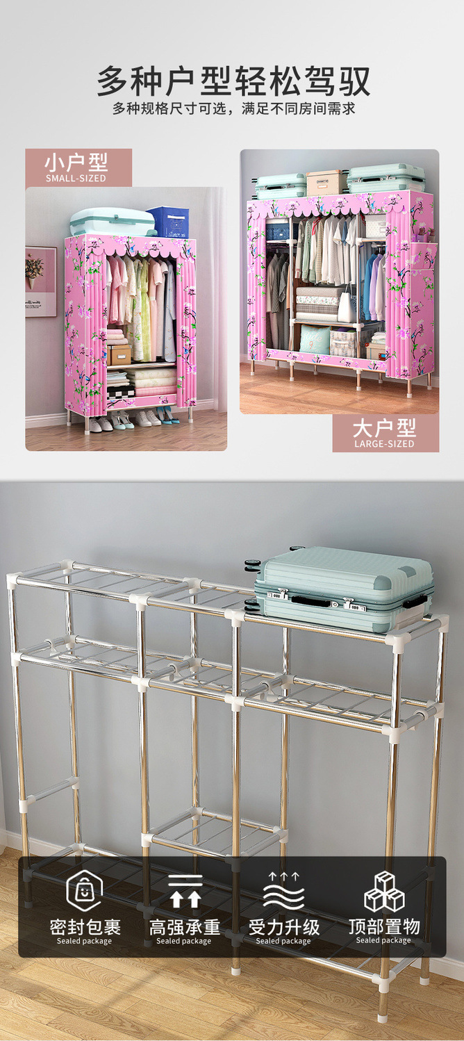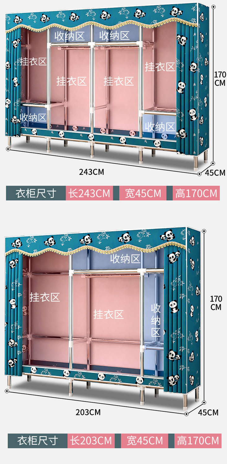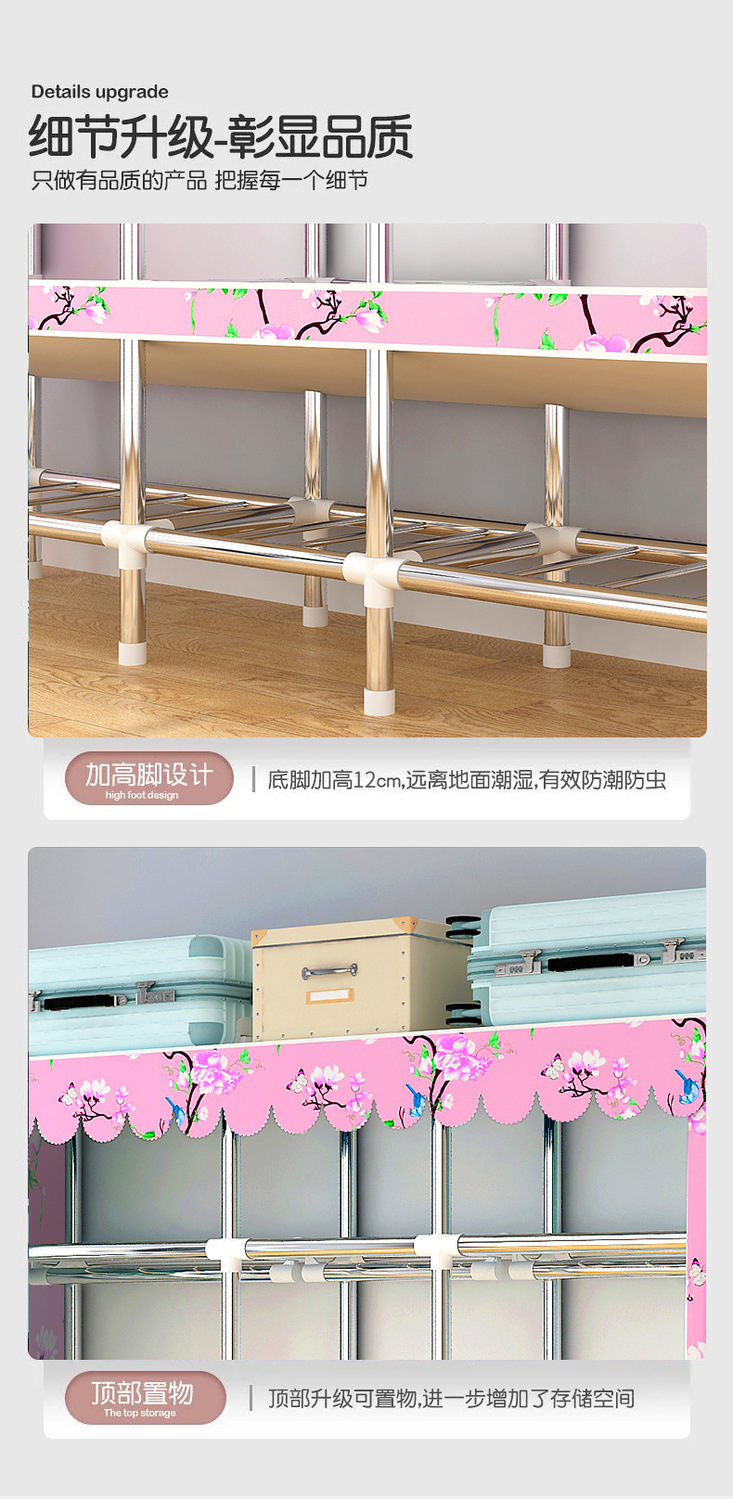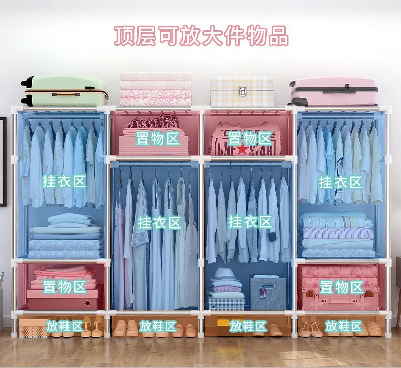 간단한 옷장, 가정용 옷 걸이 공간, 다중 침실 임대실, 조립식, 견고하고 내구성이 뛰어나고 간단한 방진 전체 강철 튜브 옷장