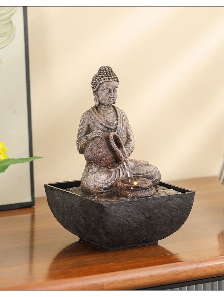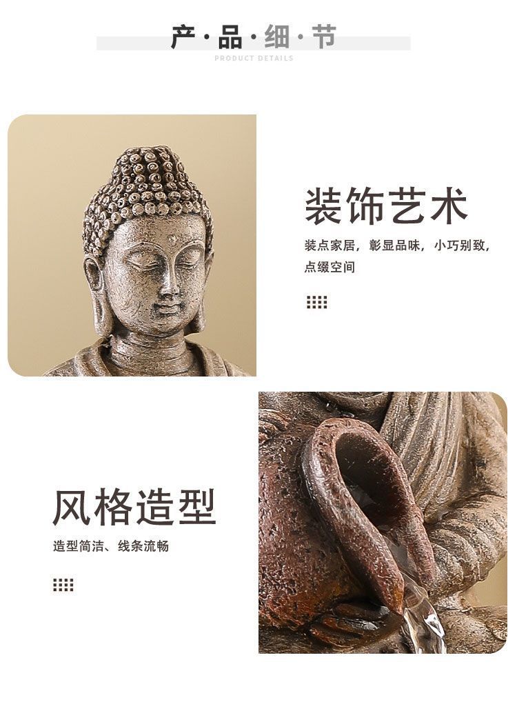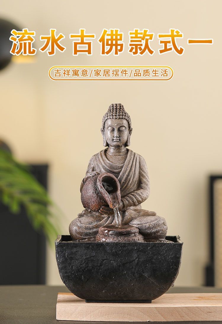 선불교 부처님의 흐르는 물은 부를 가져옵니다. 사무실 풍수 장식품 거실 입구 장식 수경 가정용 소형 분수