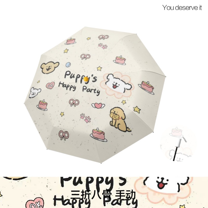 라인 강아지 완전 자동 우산, 비 또는 빛 우산, 자외선 차단 및 자외선 차단, 귀여운 스타일의 휴대용 파라솔