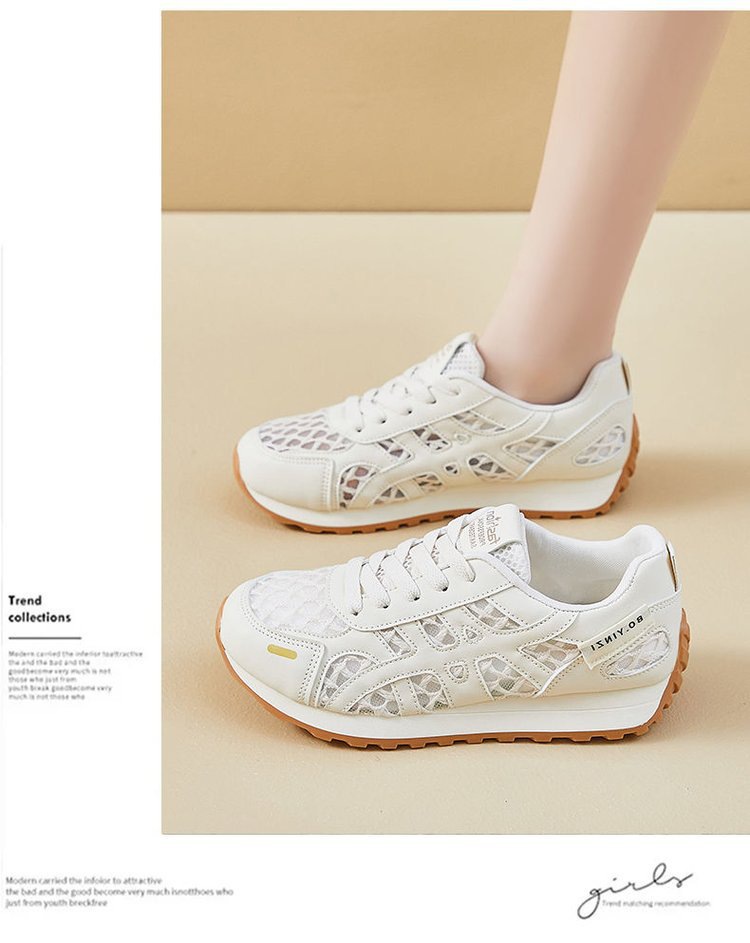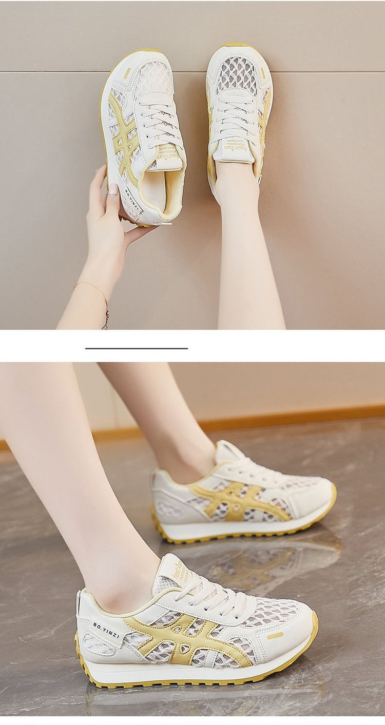여성을위한 메쉬 통기성 스포츠 신발 2025 새로운 여름 중공 흰색 육군 훈련 신발 다목적 캐주얼 러닝 메쉬 신발
