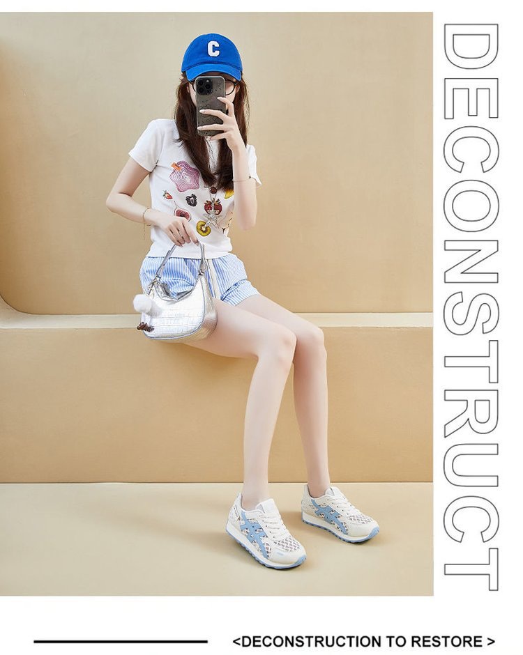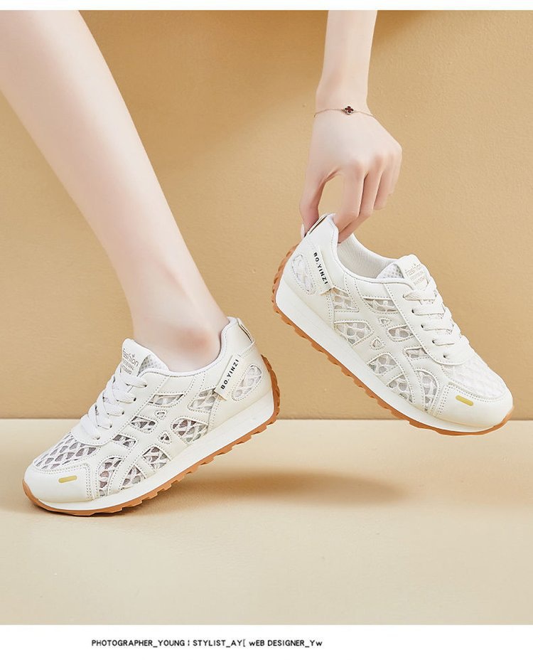 여성을위한 메쉬 통기성 스포츠 신발 2025 새로운 여름 중공 흰색 육군 훈련 신발 다목적 캐주얼 러닝 메쉬 신발스토어 가기