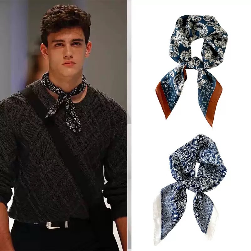 남성용 작은 사각형 스카프, 새로운 여성용 모조 실크 스카프, 남성용 캐슈 플라워 다용도 트렌디 캐주얼 스카프, 다용도 스카프