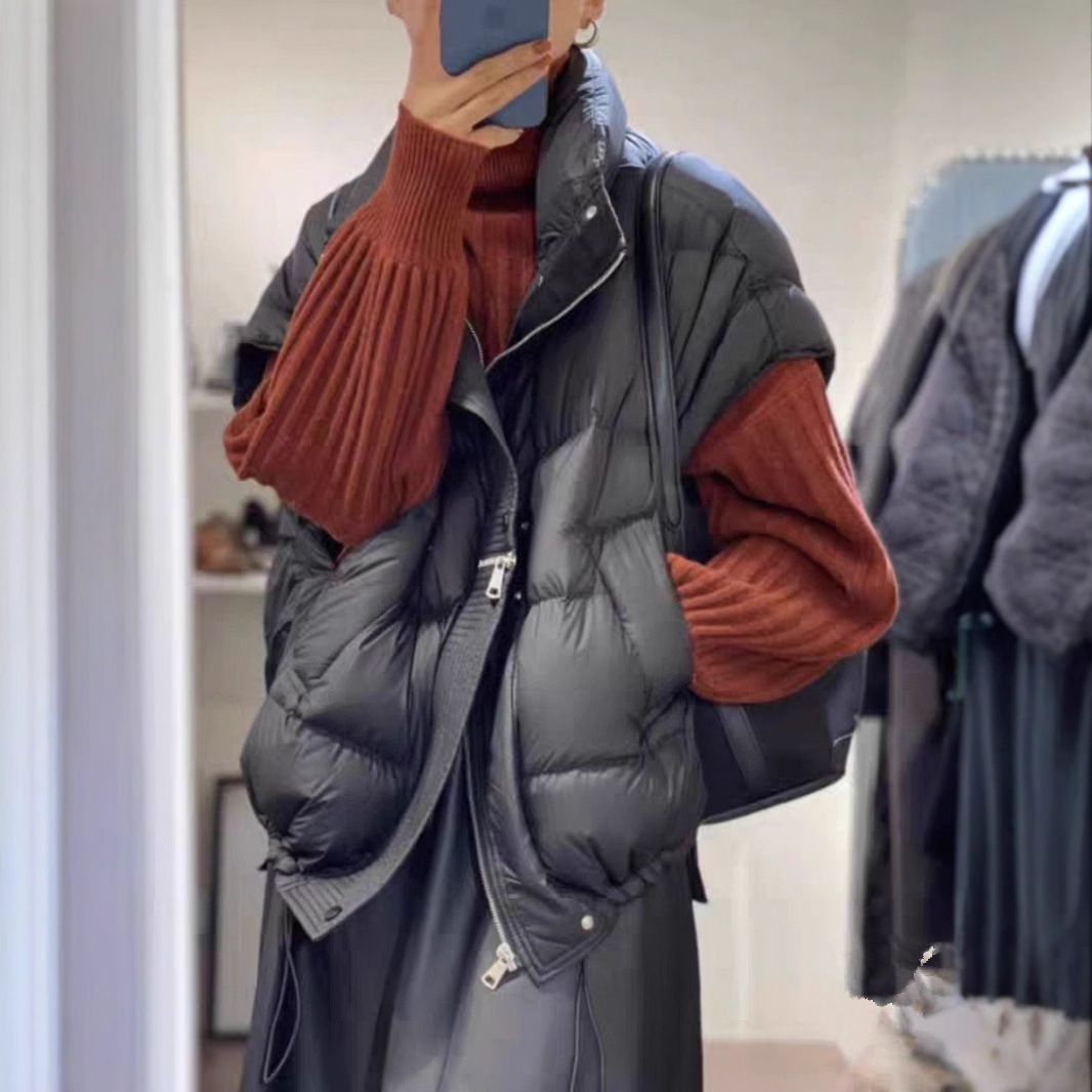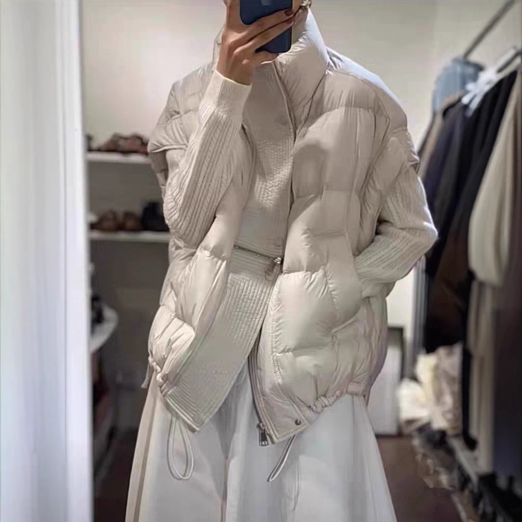 캐주얼 스탠드 칼라 다운 재킷 조끼 가을 겨울 루즈 슬리밍 다용도 짧은 코트 레이어드 기질 시크 탑 여성용