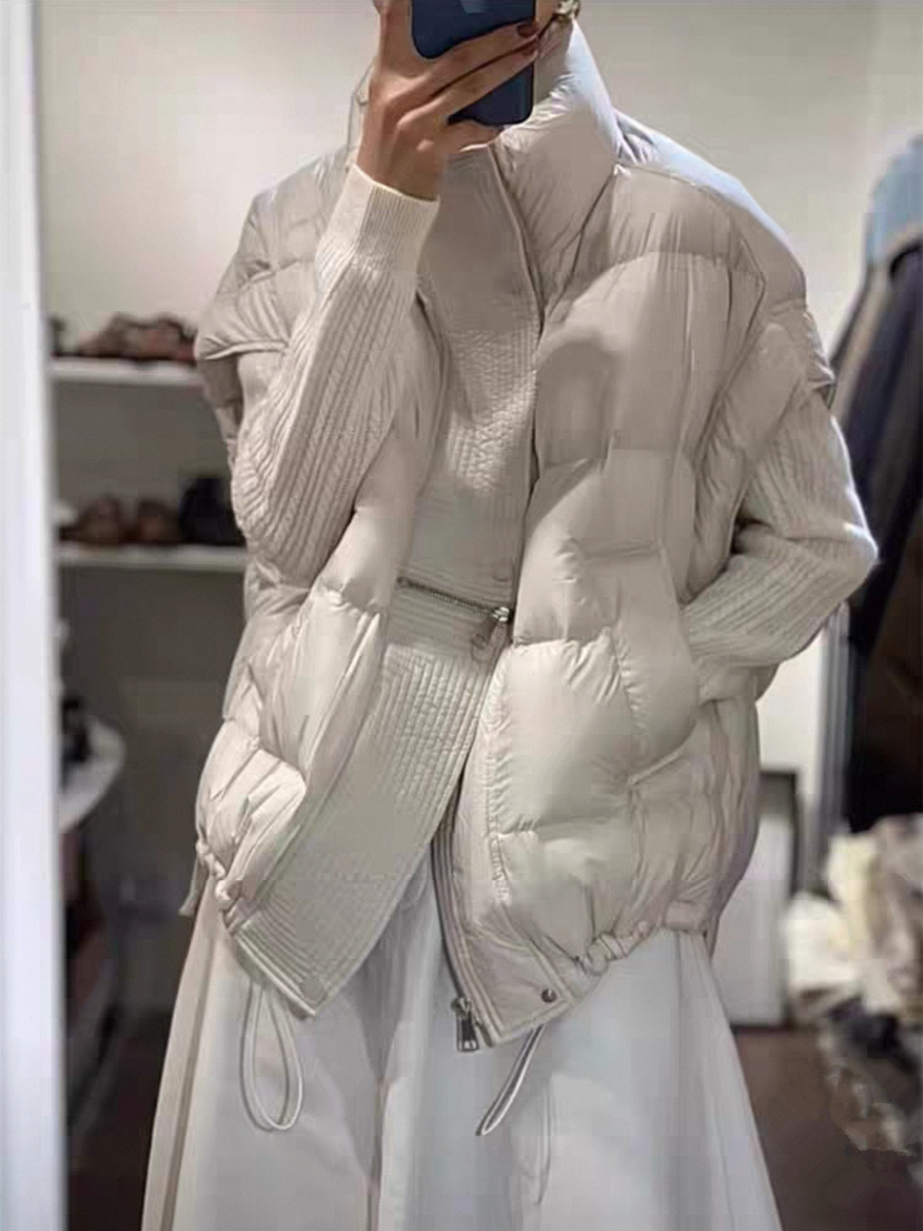 캐주얼 스탠드 칼라 다운 재킷 조끼 가을 겨울 루즈 슬리밍 다용도 짧은 코트 레이어드 기질 시크 탑 여성용스토어 가기