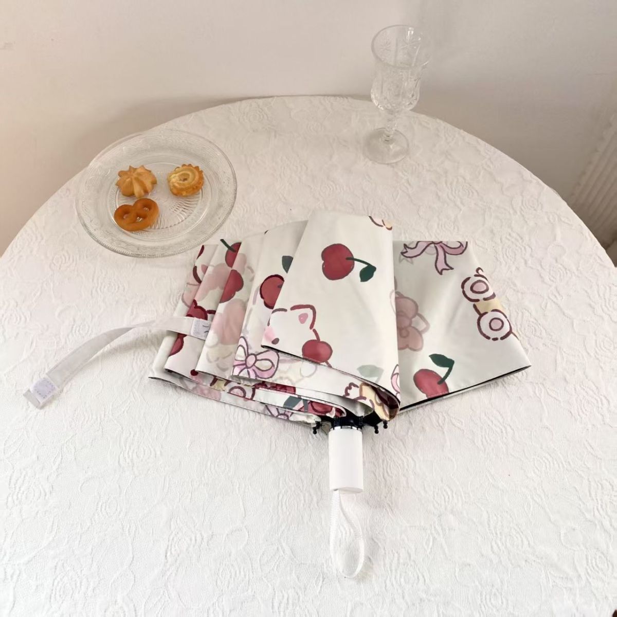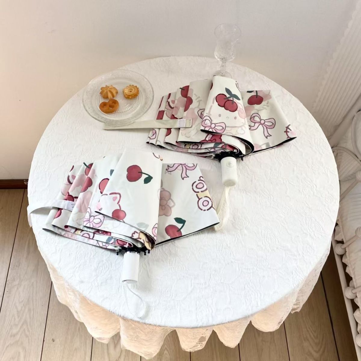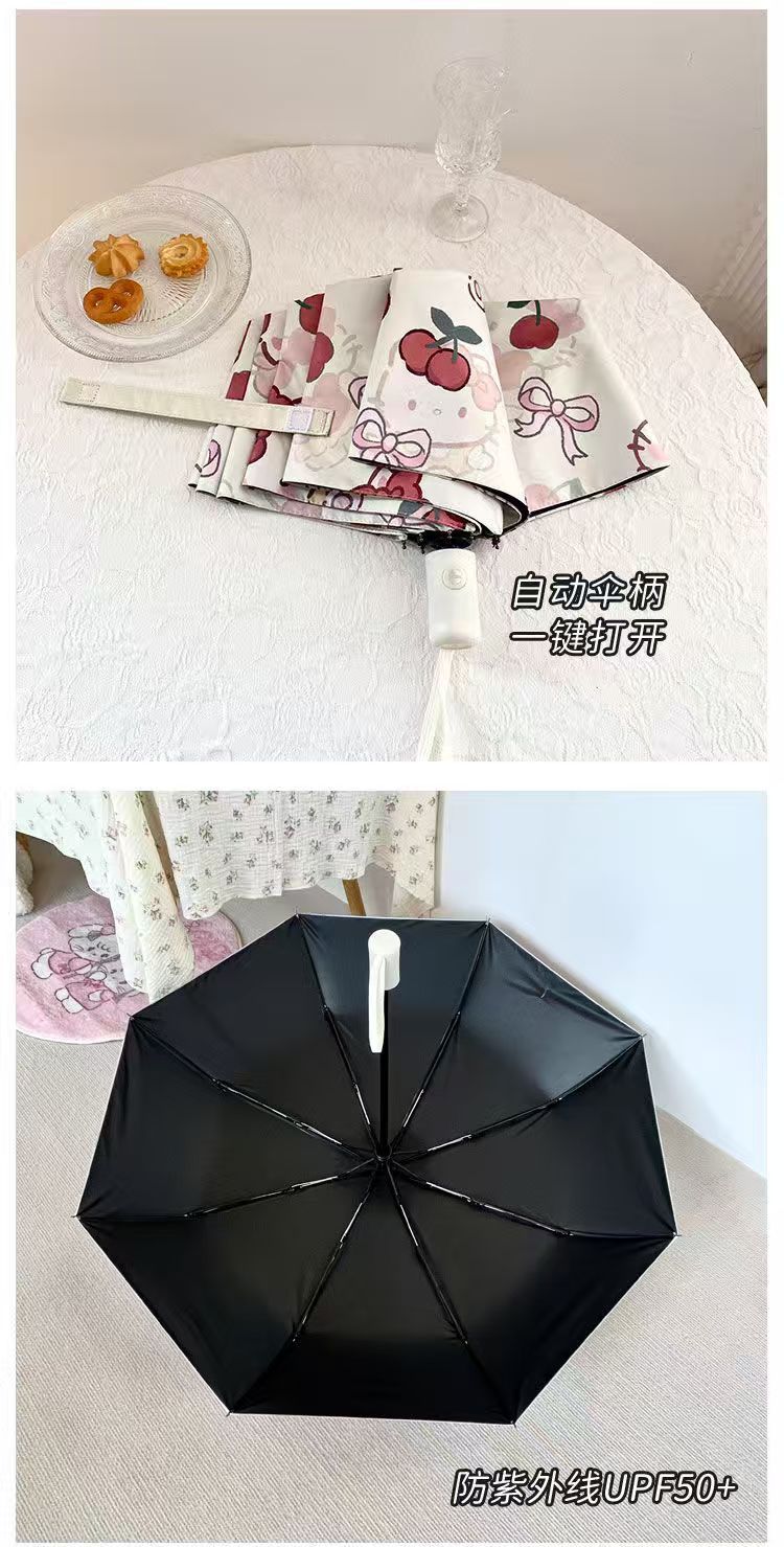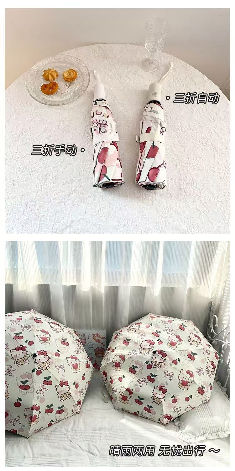 체리 헬로 키티 우산 학생 전용 70% off 8본 접이식 자동 우산 자외선 차단 비닐 파라솔
