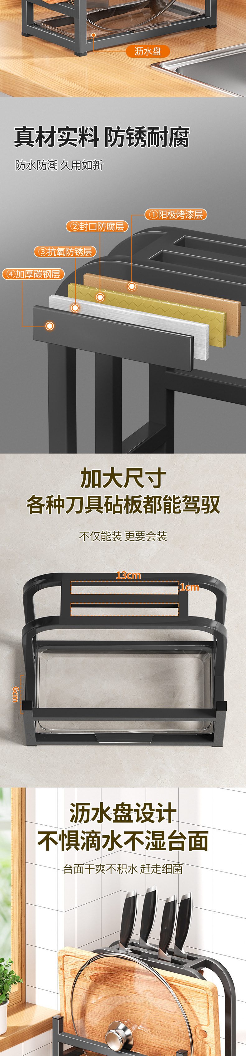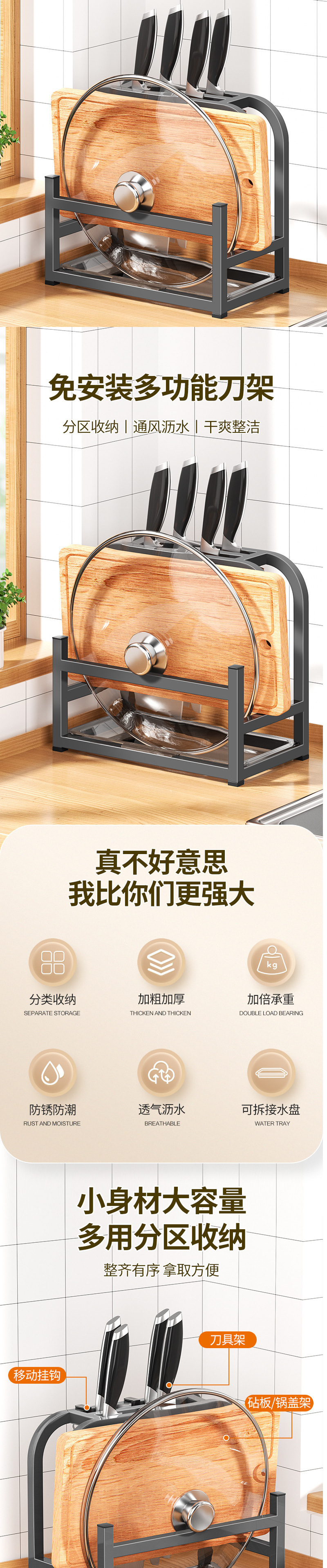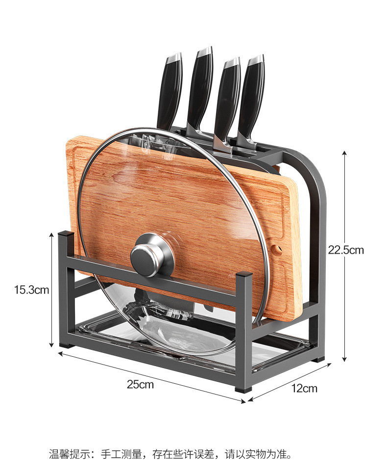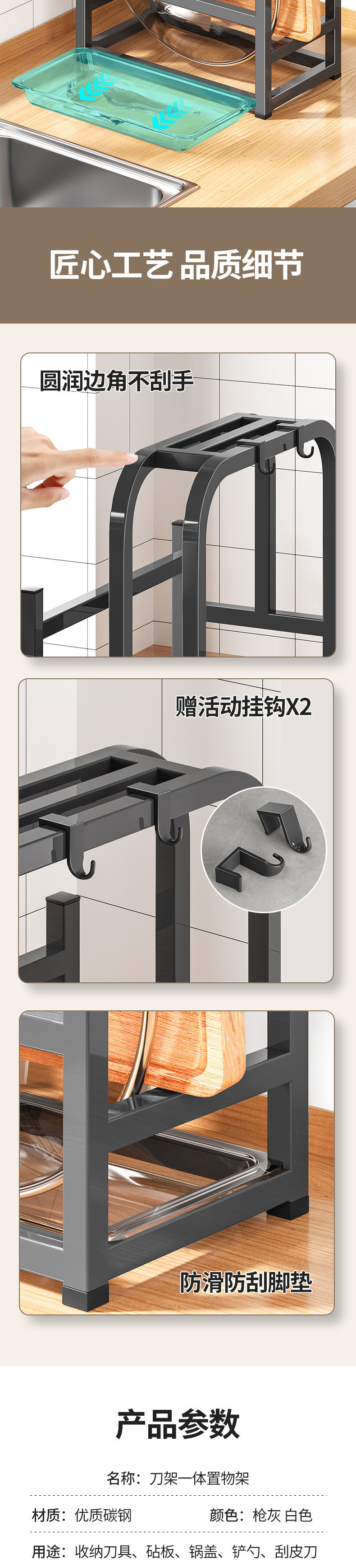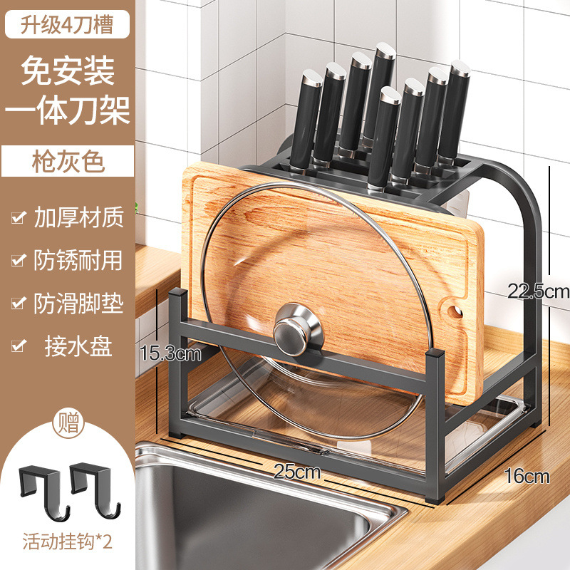 • 배수 트레이 포함 [다기능] 칼 홀더 + 도마/냄비 뚜껑 홀더 건 그레이