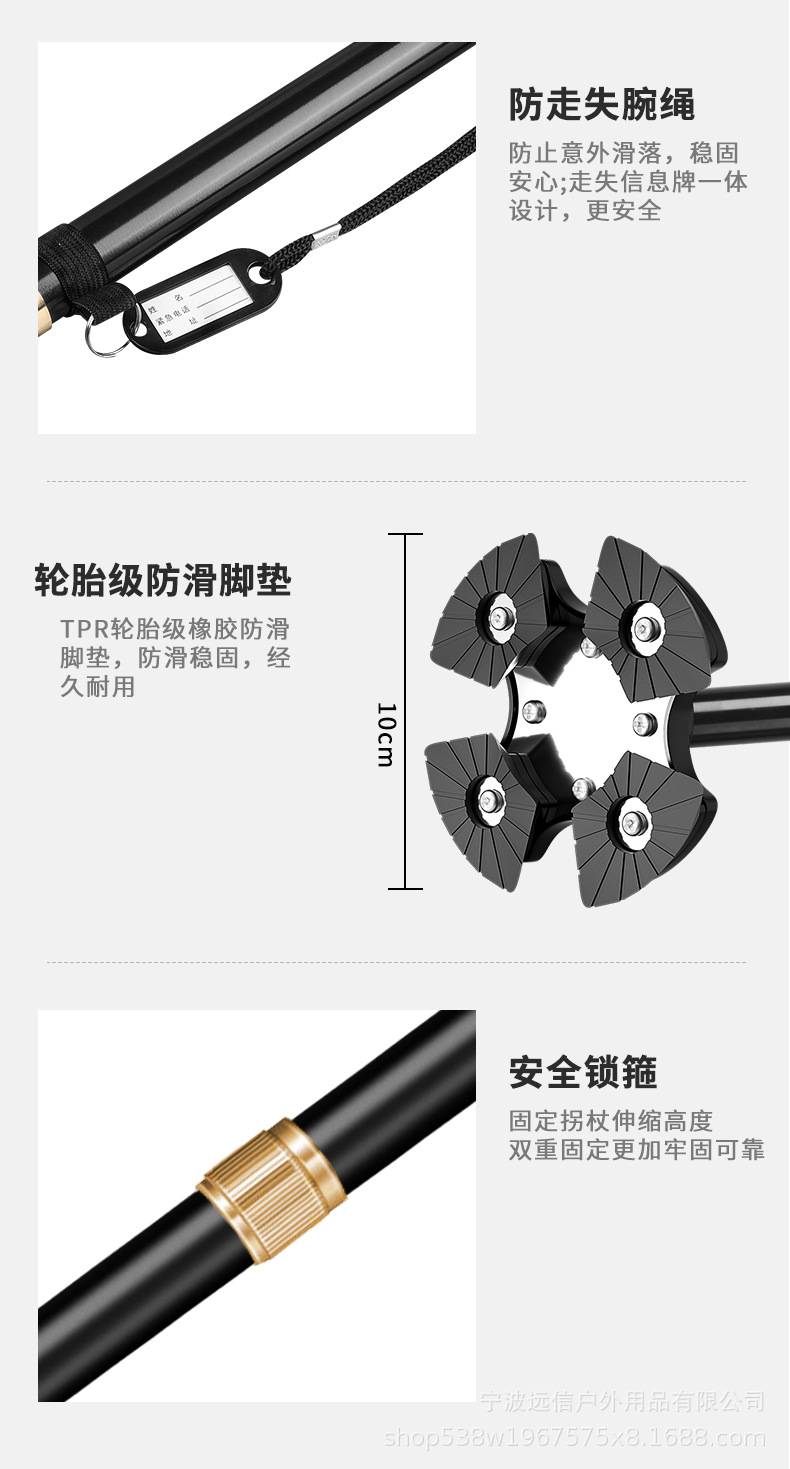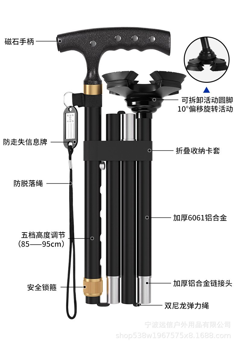 노인을 위한 알루미늄 합금 지팡이, 자석, 한쪽 다리 활동, 4개의 다리, 2개의 다용도 지팡이, 5개의 섹션, 접이식, 텔레스코픽 및 휴대 가능스토어 가기