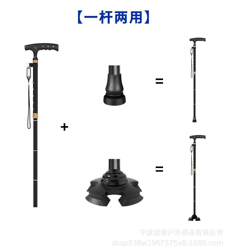 노인을 위한 알루미늄 합금 지팡이, 자석, 한쪽 다리 활동, 4개의 다리, 2개의 다용도 지팡이, 5개의 섹션, 접이식, 텔레스코픽 및 휴대 가능