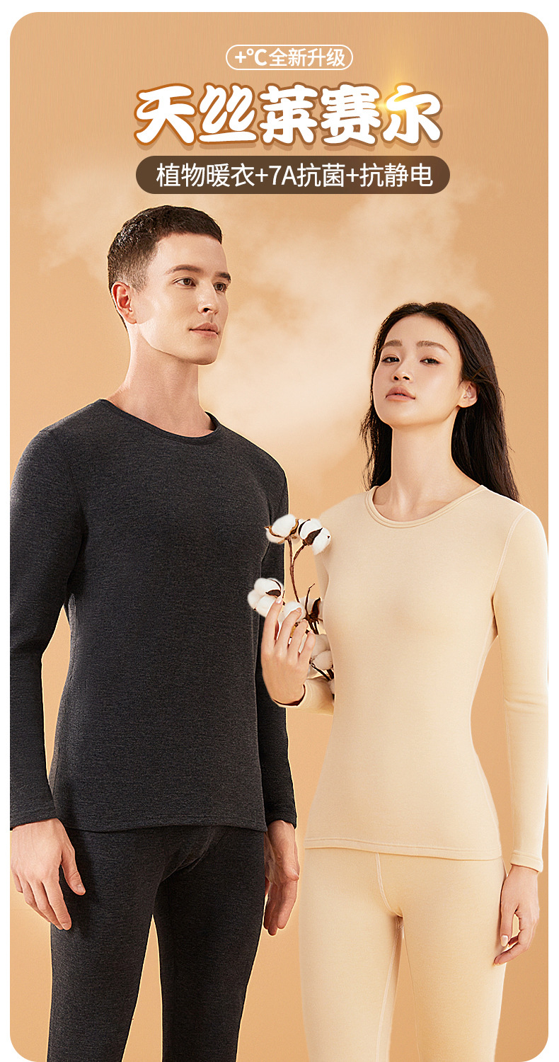 맞춤형 리오셀 텐셀 벨벳 커플 보온 속옷, 여성용 항균 실크 가을 옷, 남성용 벨벳 가을 바지스토어 가기