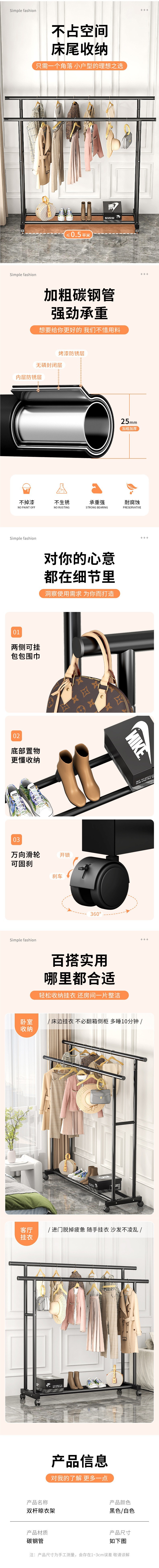 코트 랙 바닥에서 천장까지 가정용 침실 모바일 크림 옷 간단한 기숙사 옷걸이 발코니 옷 건조 랙 수직