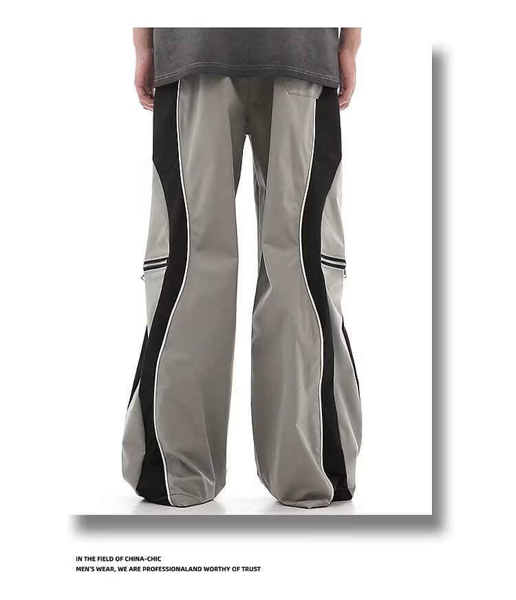 하이 스트리트 트렌디 브랜드 더블 지퍼 남성용 봄 여름 아메리칸 스타일 핸섬 기능성 스타일 바지 루즈 와이드 레그 스포츠 바지스토어 가기