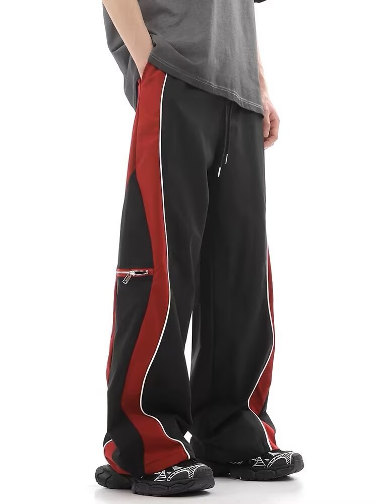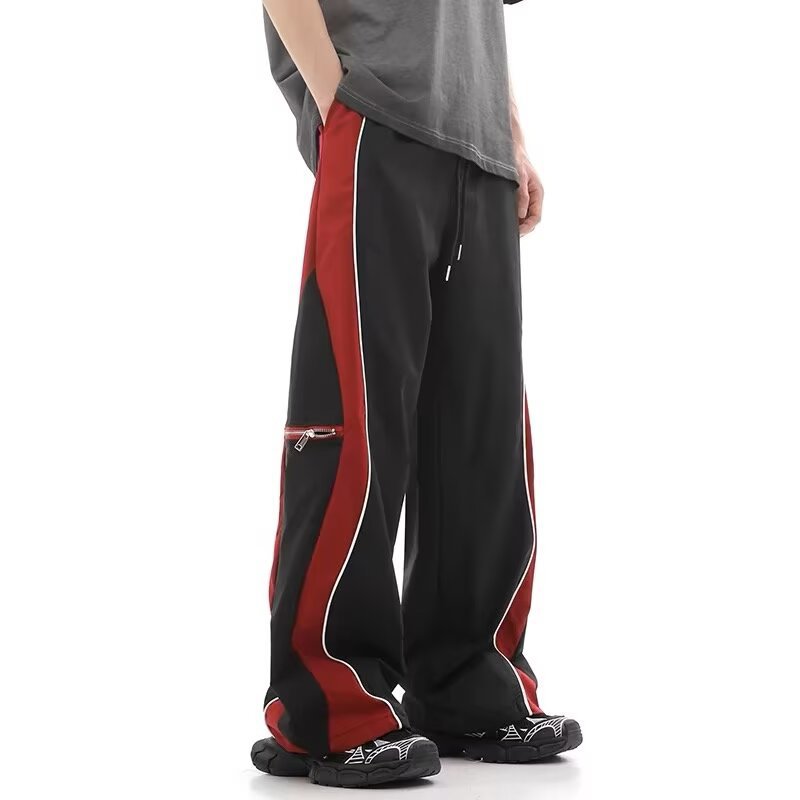 하이 스트리트 트렌디 브랜드 더블 지퍼 남성용 봄 여름 아메리칸 스타일 핸섬 기능성 스타일 바지 루즈 와이드 레그 스포츠 바지