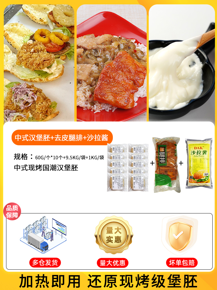 • 중국식 햄버거빵 10개 SKU + 껍질 제거된 닭다리살 1봉 + 샐러드 드레싱 1봉 - 5.4kg