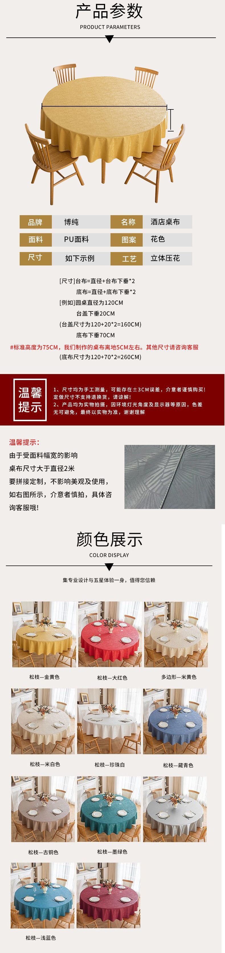 원형 식탁보, 고급 방수, 방유, 핫워시 프리 식탁, 유럽식 가정용 호텔, 레스토랑, 대형 테이블 독립 스테이션스토어 가기