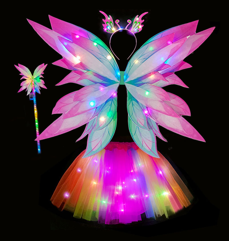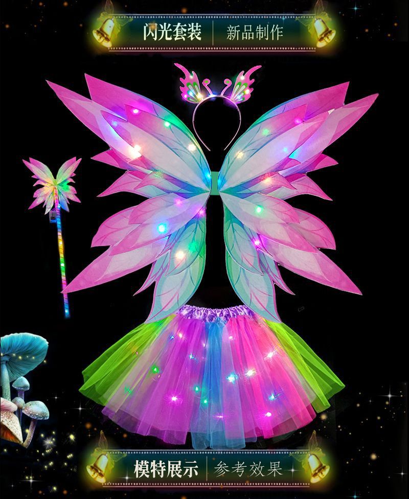 새로운 꽃 요정 빛나는 날개 소품 엘프 백 장식 공주 스커트 작은 마술 요정 정장 소녀 휴일 Lianyan