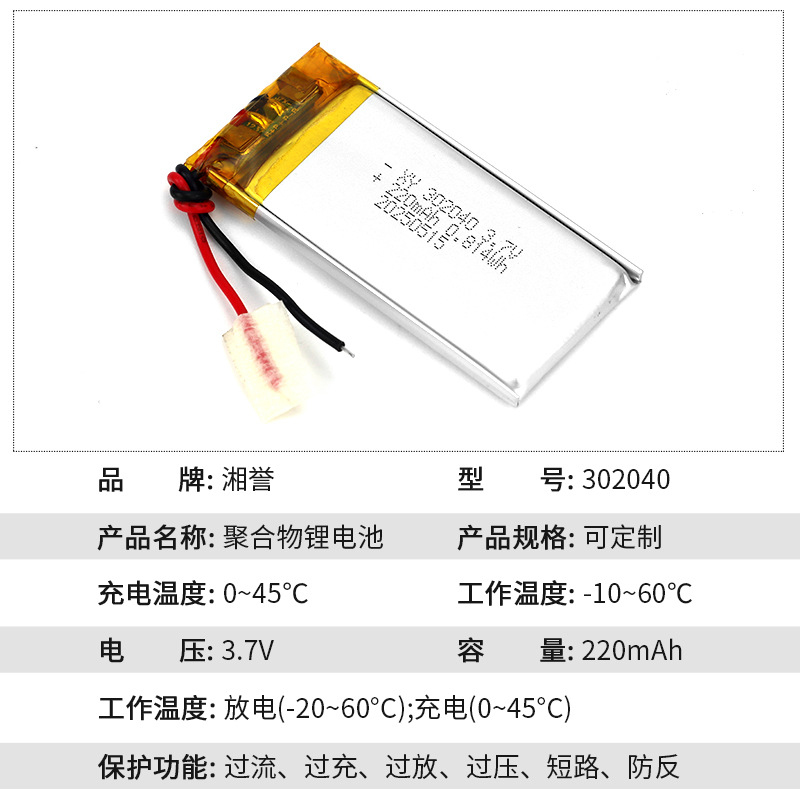 직접 공급 302040 폴리머 리튬 배터리 220mah LED 조명 녹음 펜 블루투스 헤드셋 초박형 충전식 배터리