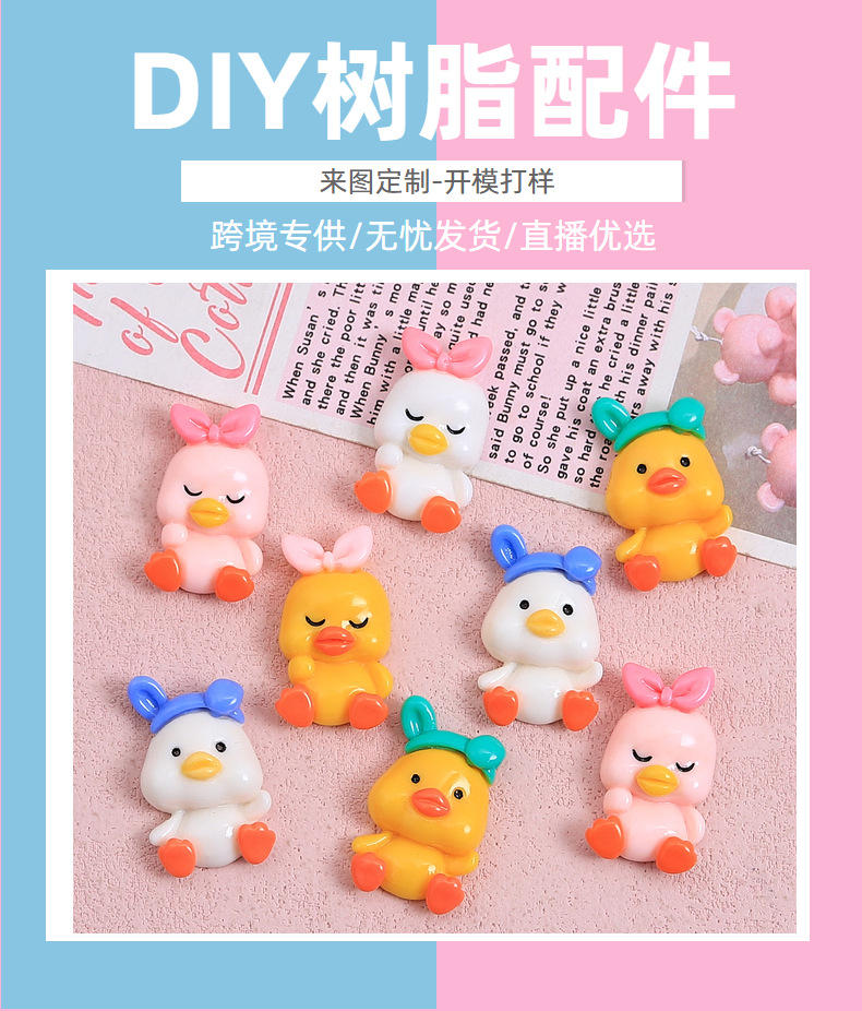 크리 에이 티브 눈부신 오리 만화 수제 diy 크림 접착제 수지 액세서리 작은 액세서리 보석 머리핀 재료 도매스토어 가기