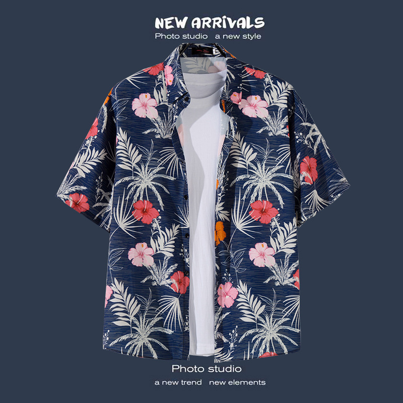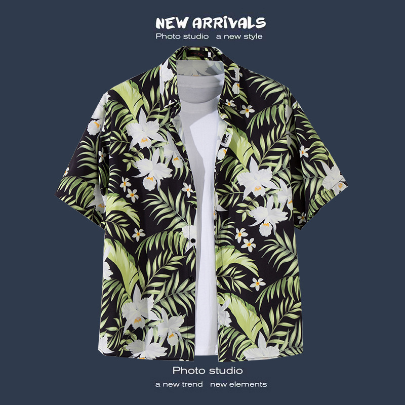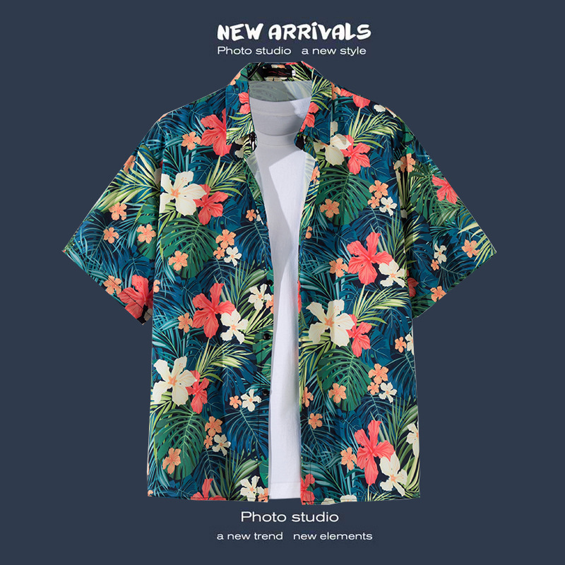 반팔 꽃무늬 셔츠 하이난섬 비치웨어 산야 하와이안 스타일 태국 여행 남성 커플 캐주얼 루즈 자켓