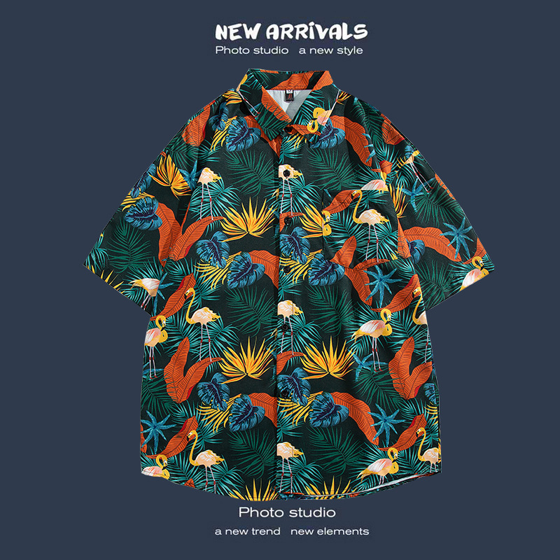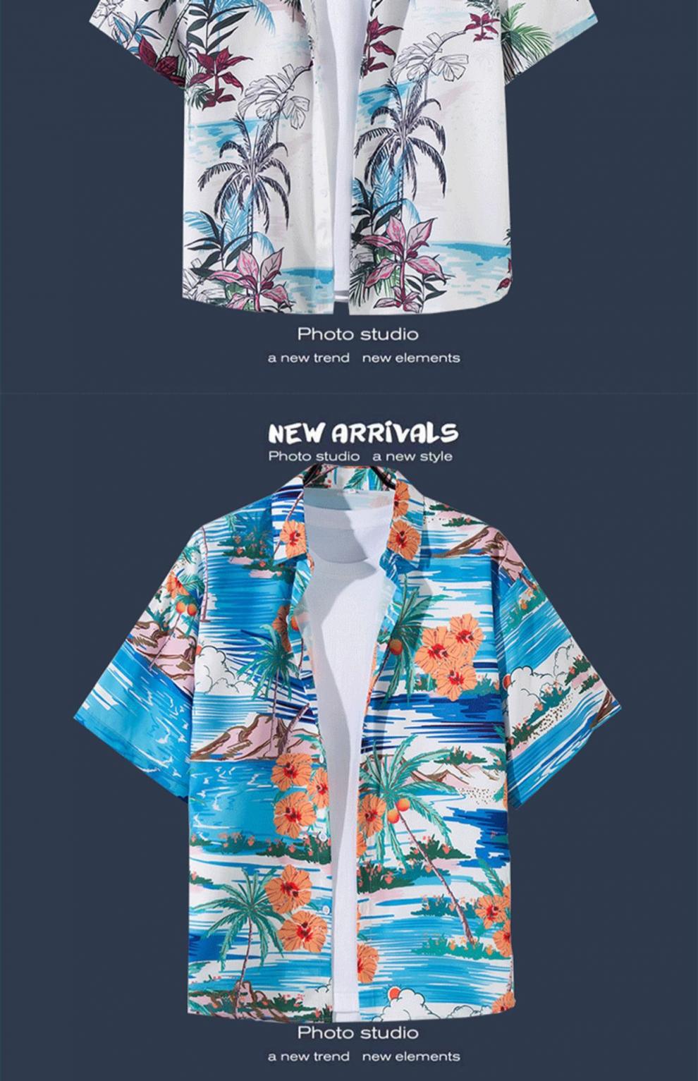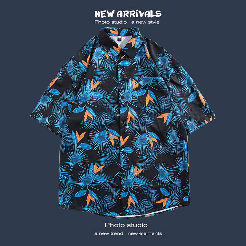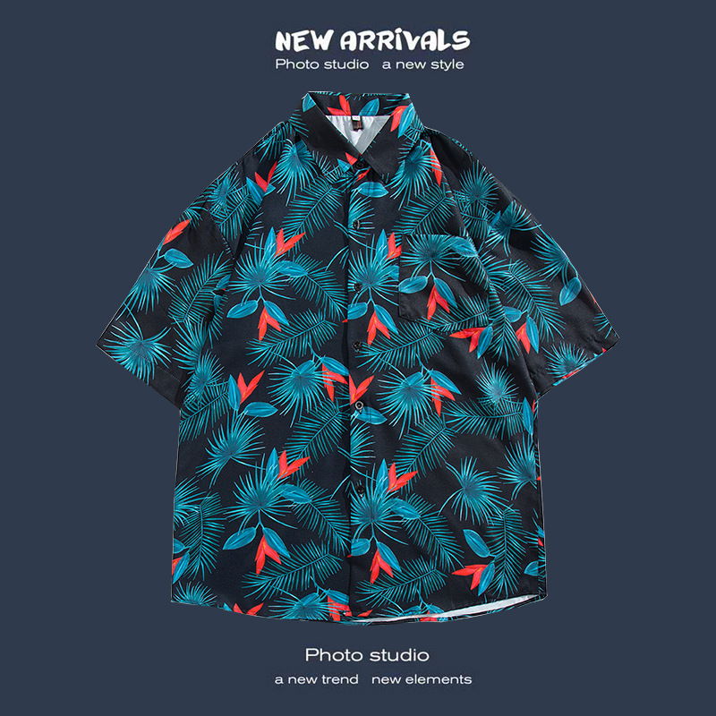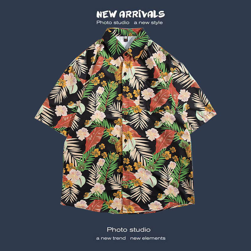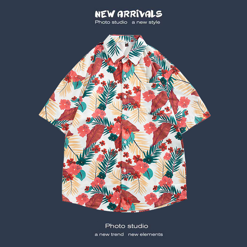 반팔 꽃무늬 셔츠 하이난섬 비치웨어 산야 하와이안 스타일 태국 여행 남성 커플 캐주얼 루즈 자켓스토어 가기