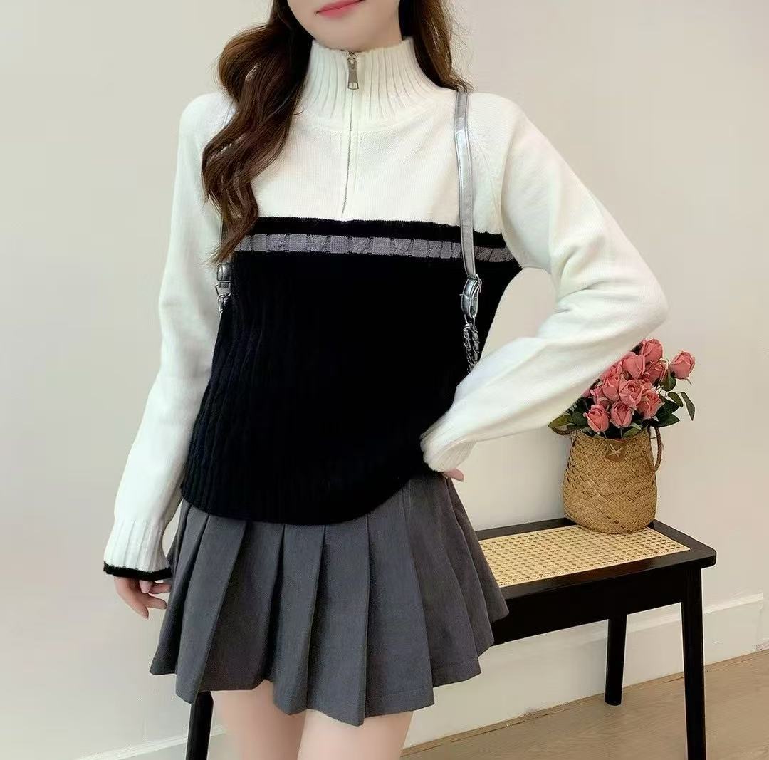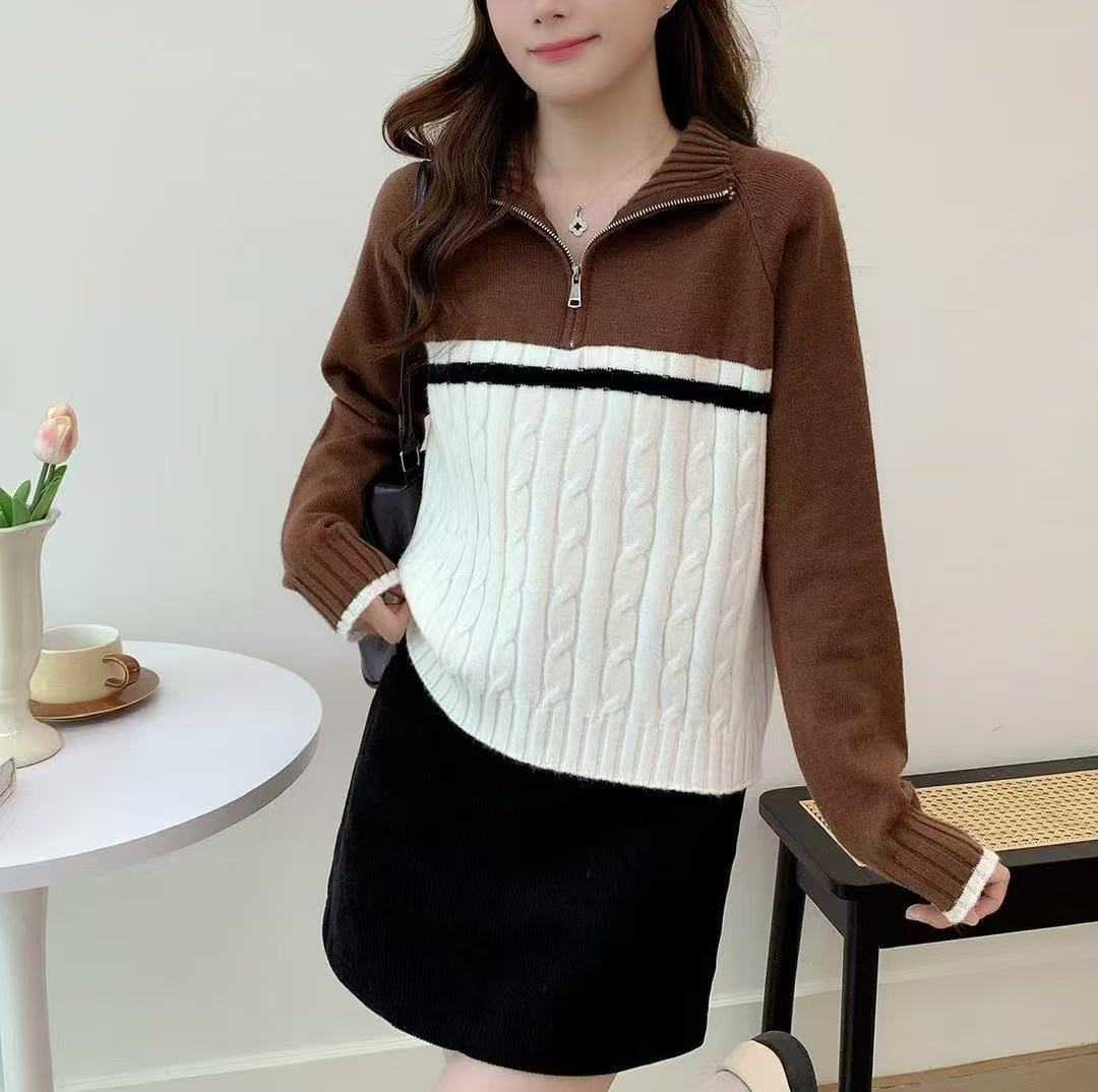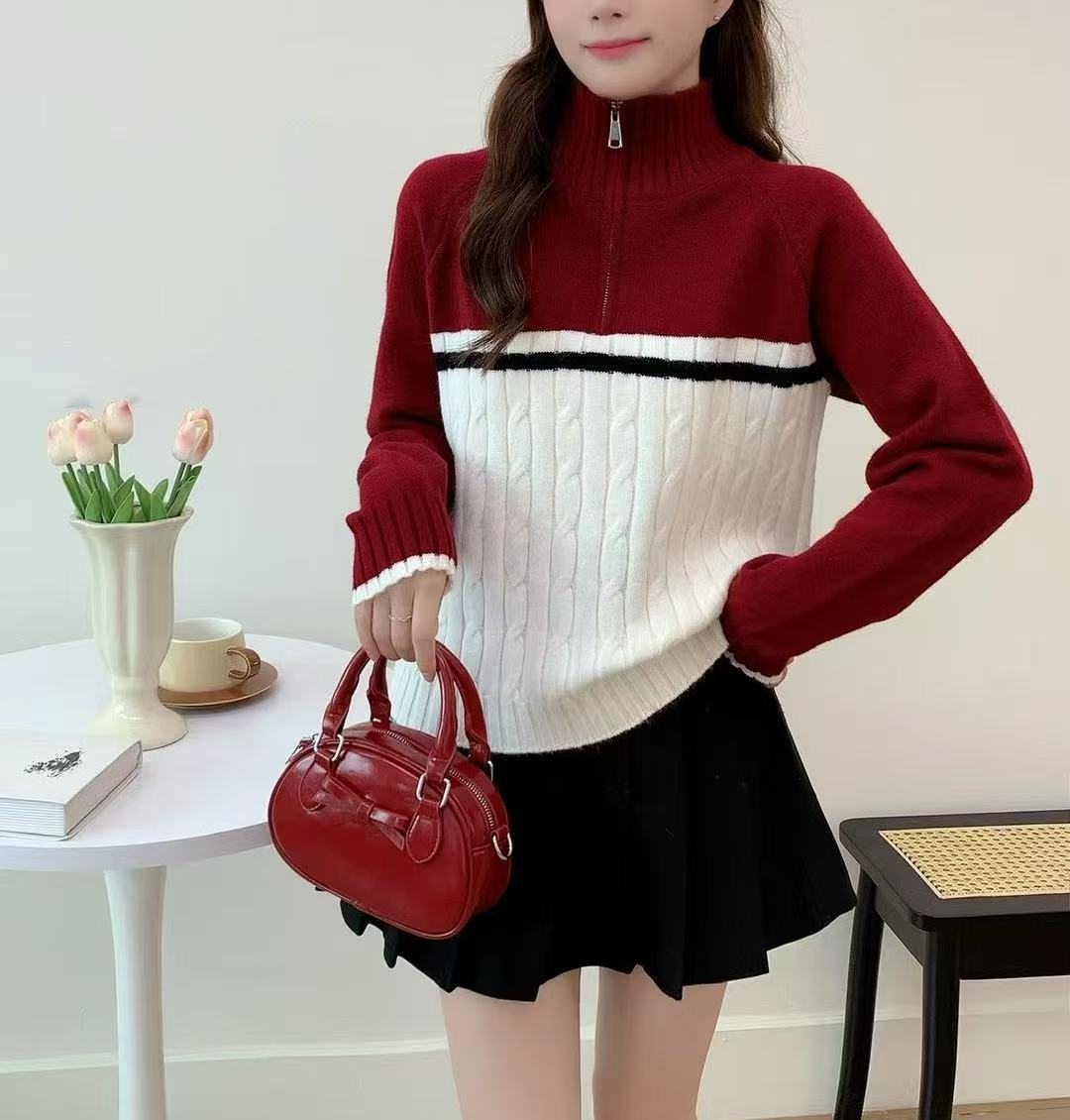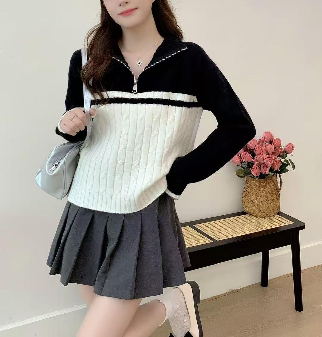 여성용 한국 스타일 슬림핏 짧은 폴로 칼라 지퍼 니트 가디건, 핫한 가을 겨울 새로운 캐주얼 다용도 스웨터스토어 가기