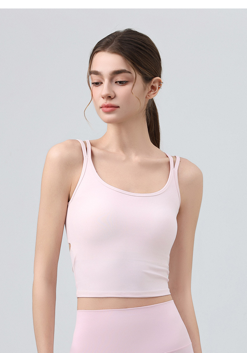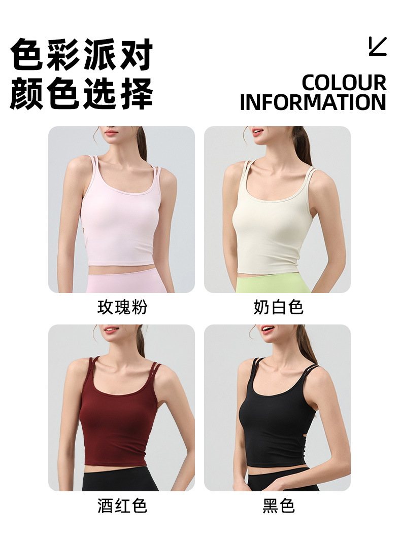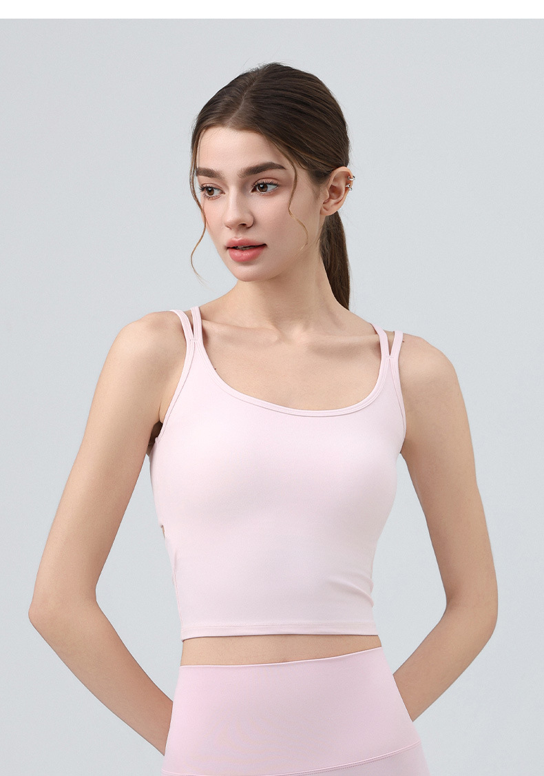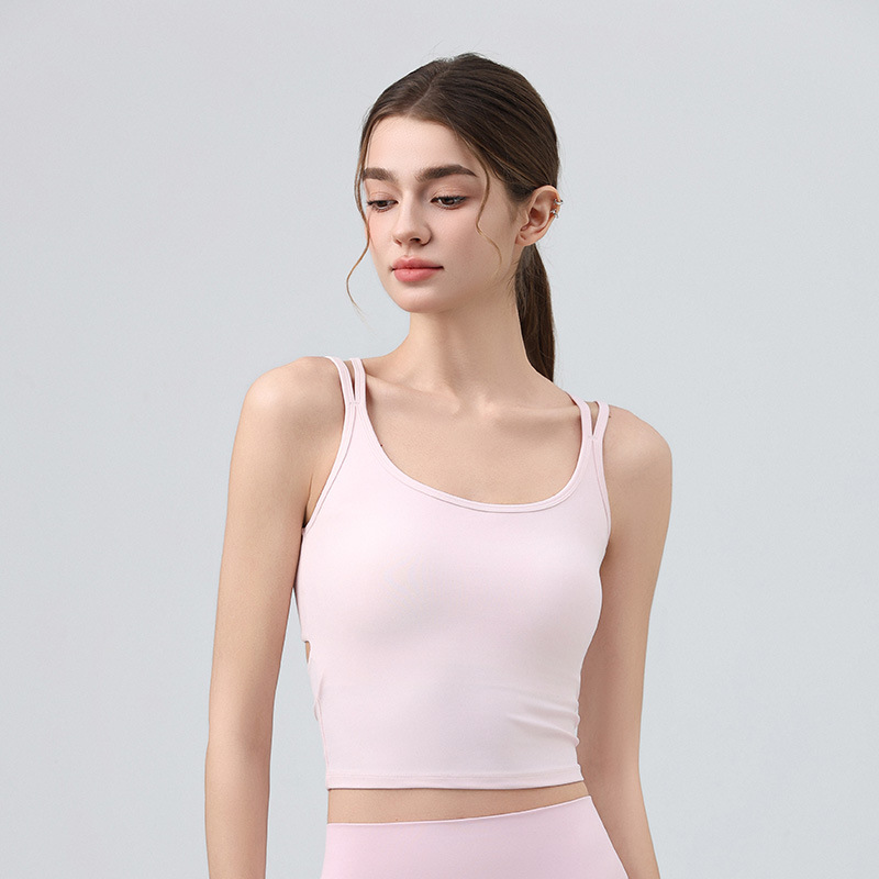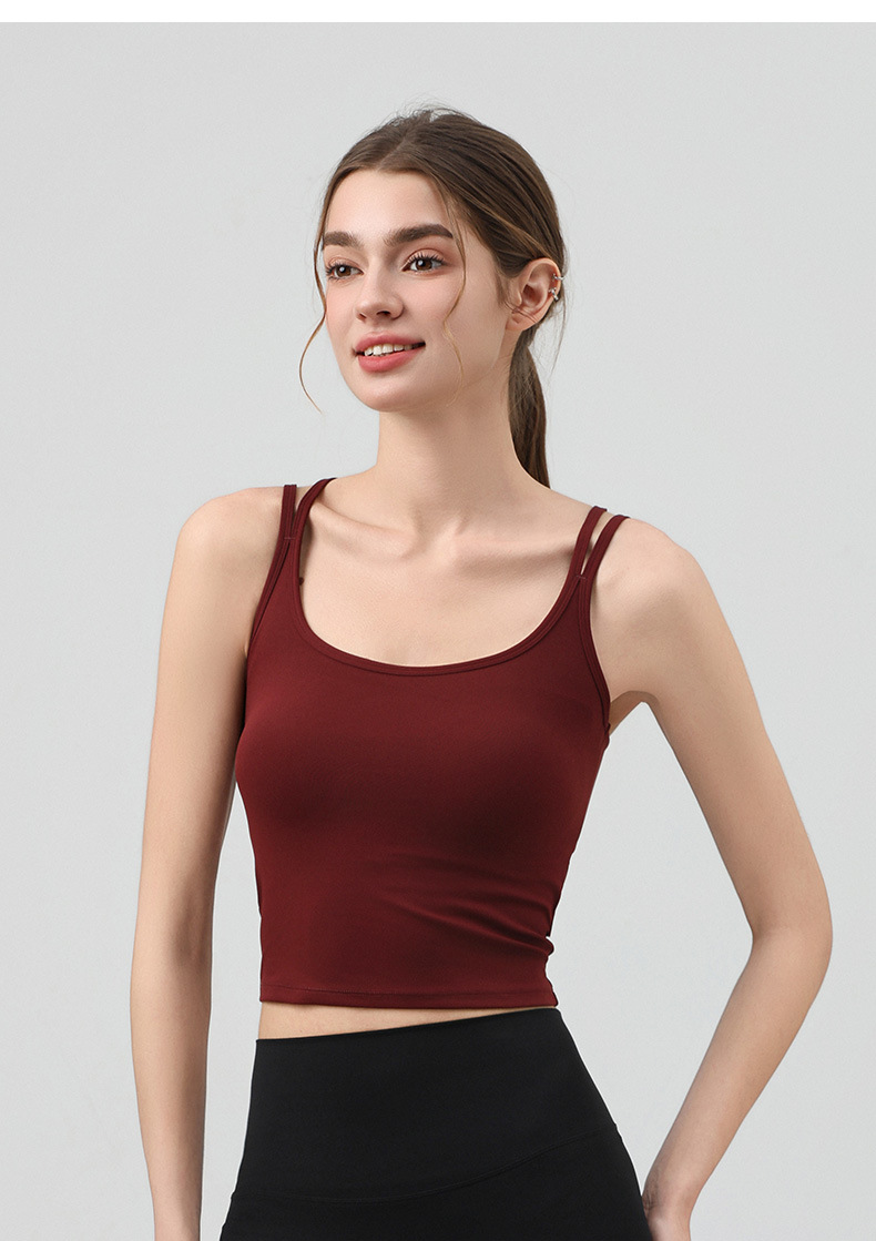 요가복, 더블 숄더 스트랩, 아름다운 등, 가슴 패드가 있는 여성용 작은 캐미솔, 스포츠 브라, 런닝용 피트니스 조끼
