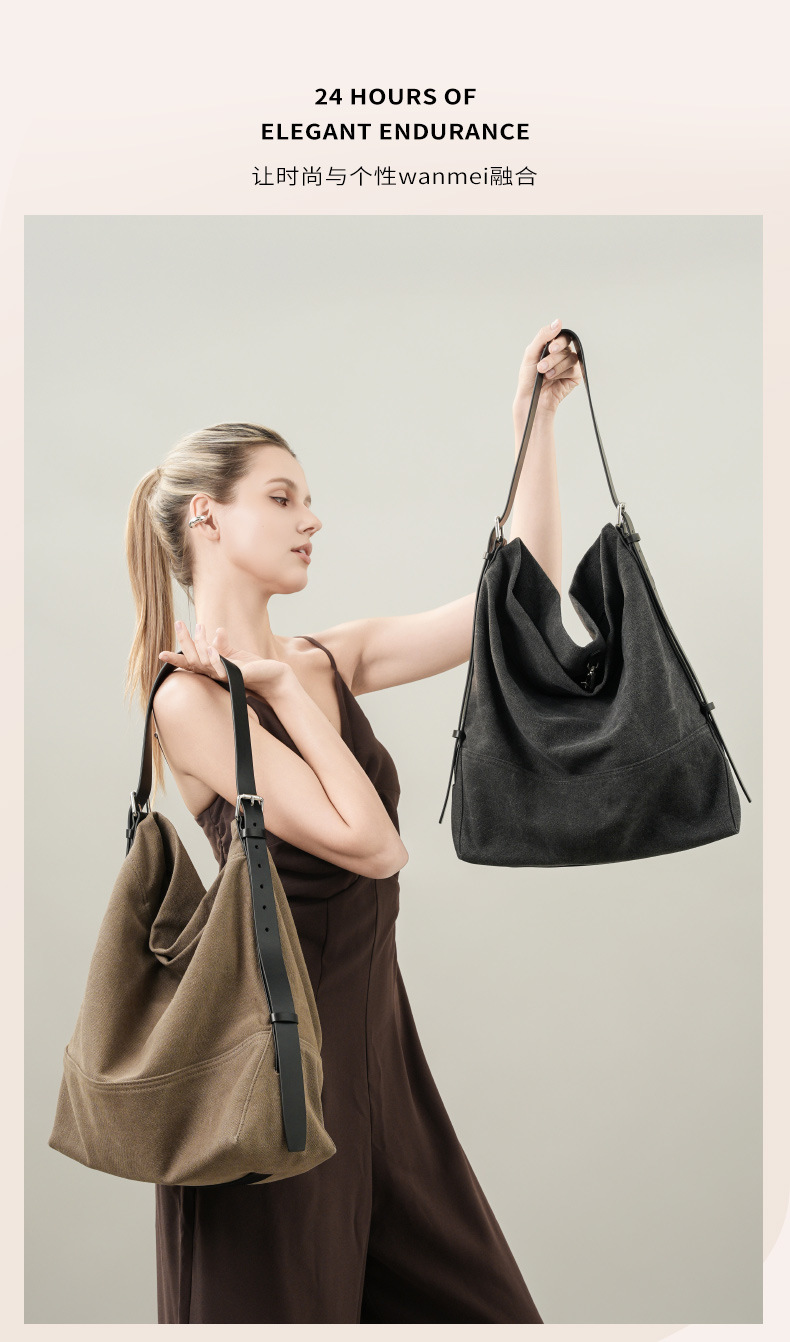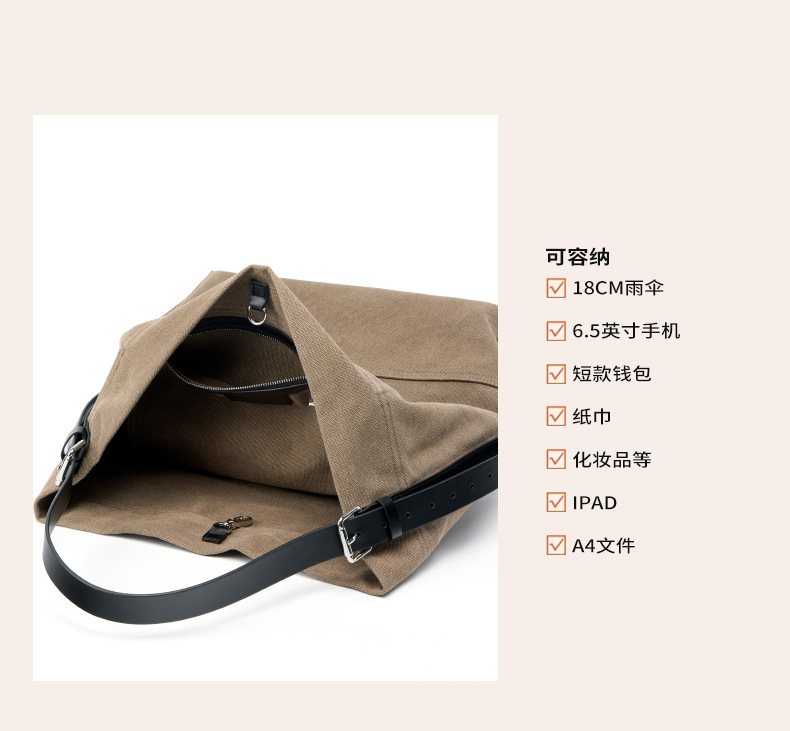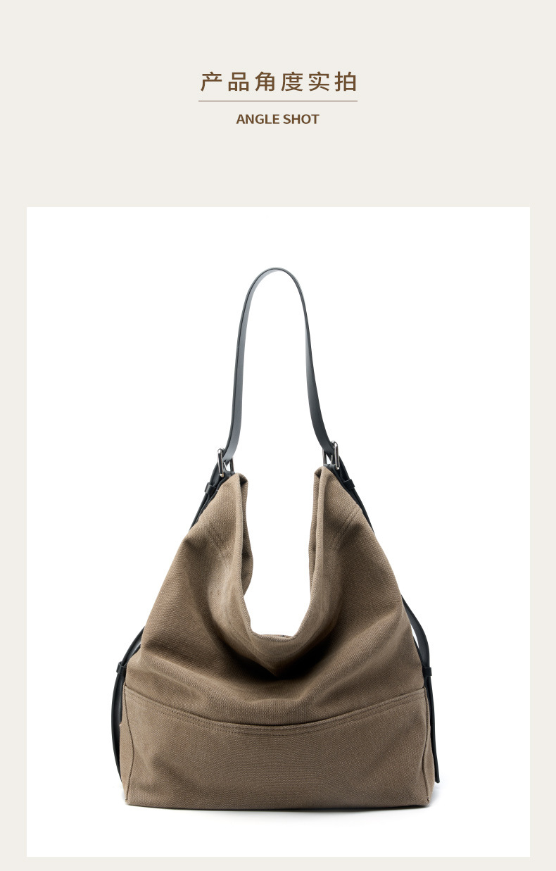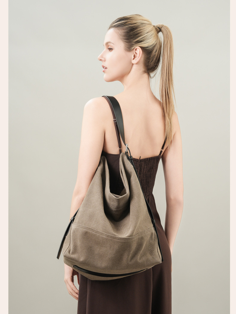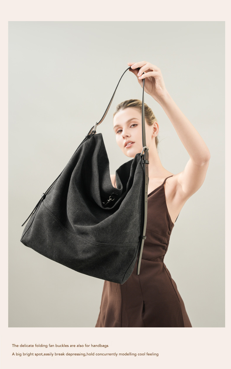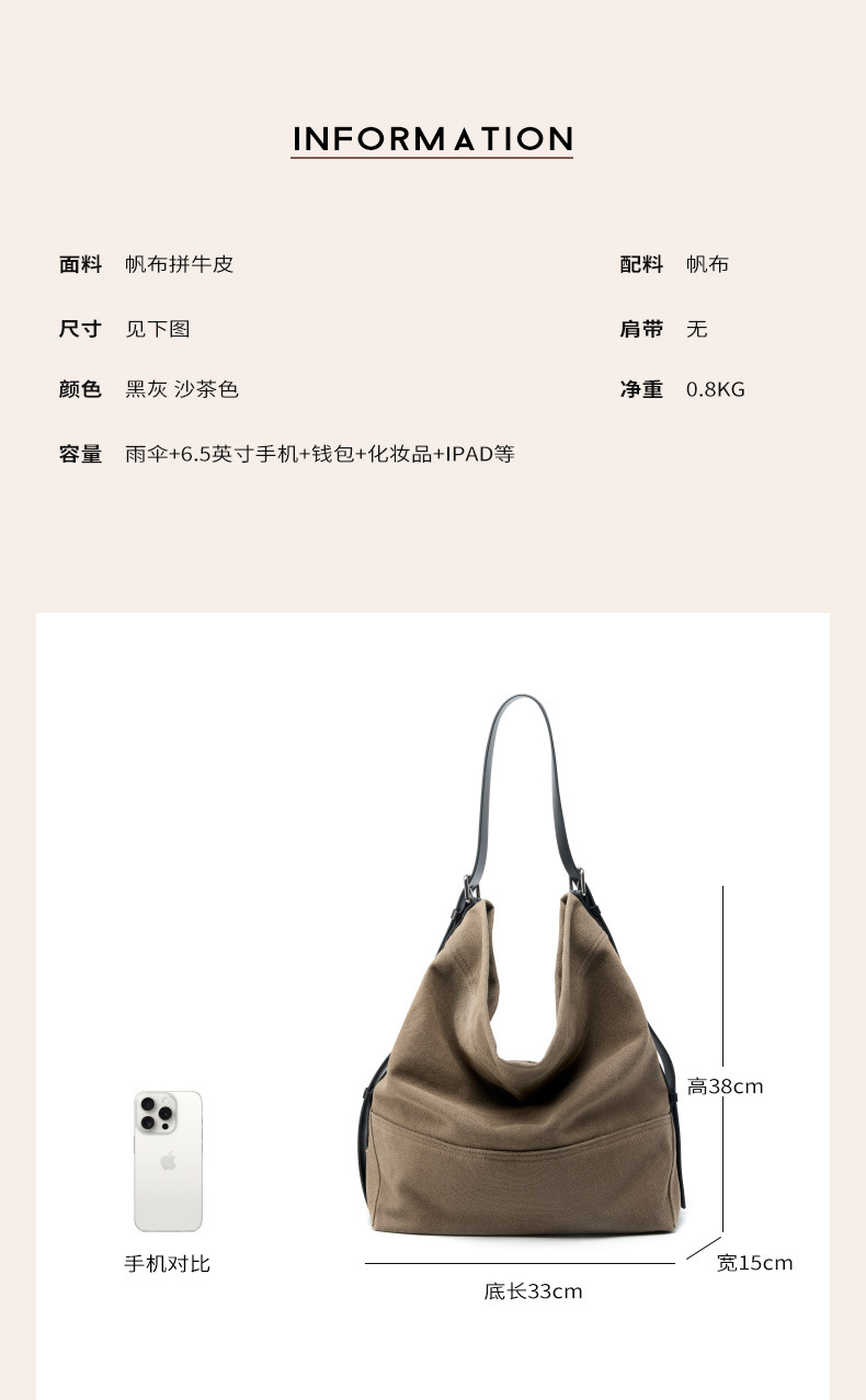 腋下女上班通勤高级感牛皮托特包加厚耐磨韩系慵懒风大容量帆布包