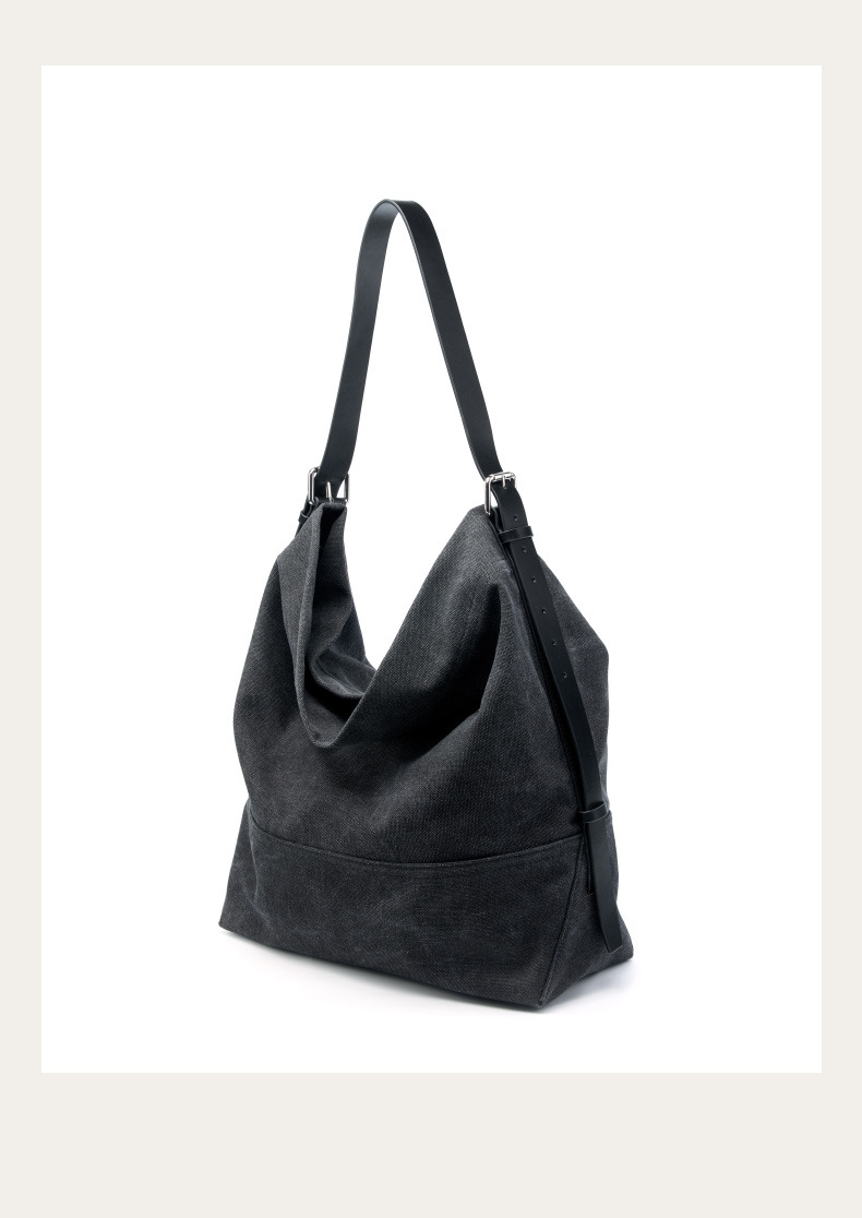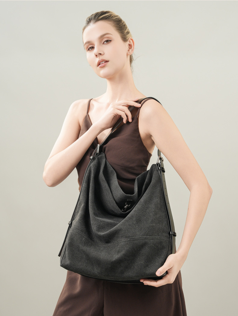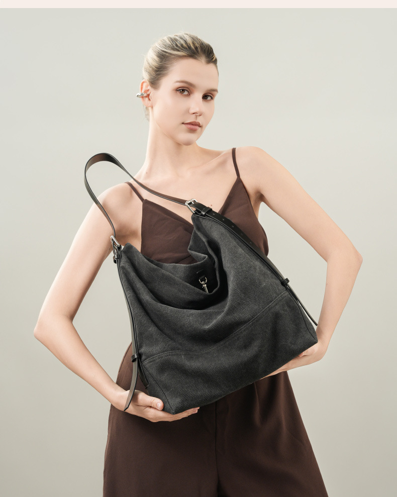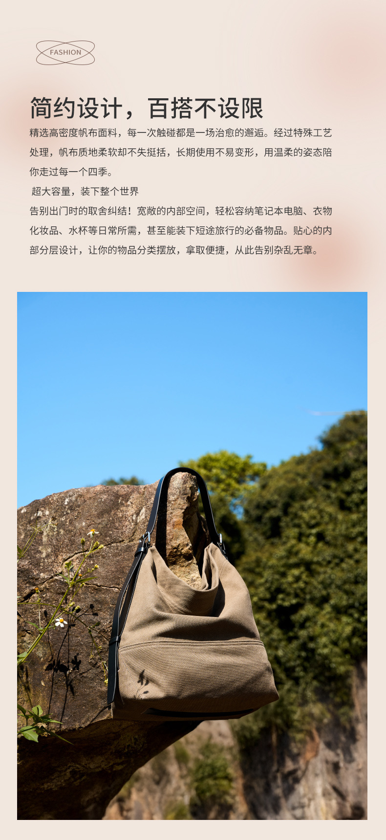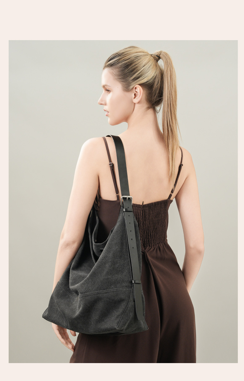 腋下女上班通勤高级感牛皮托特包加厚耐磨韩系慵懒风大容量帆布包