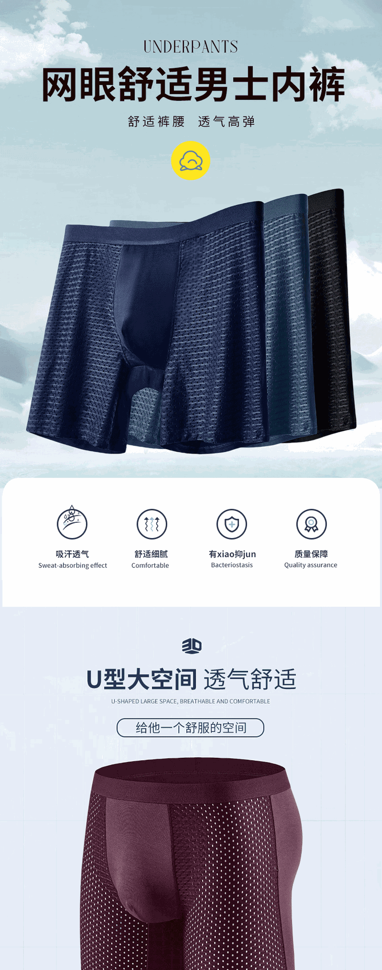 국경 간 인기 판매 남성용 메쉬 속옷 스포츠 남성용 확장 마모 방지 복서 팬티 통기성 남성용 바지 공장스토어 가기