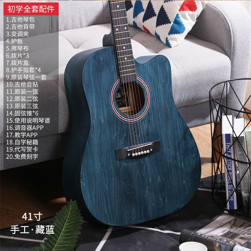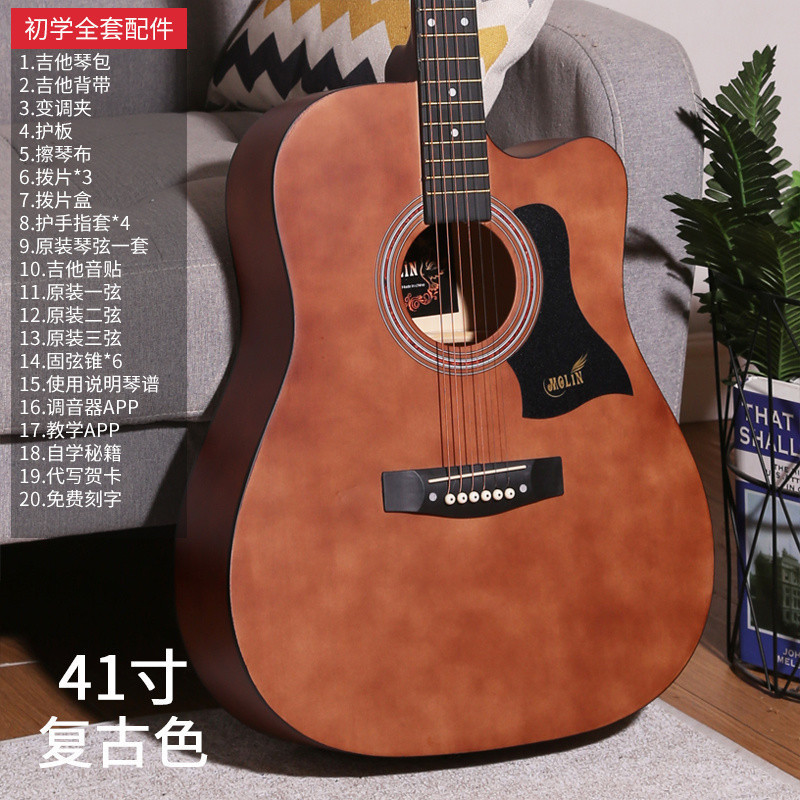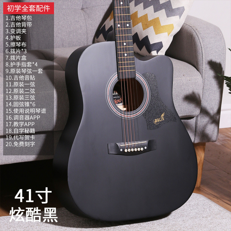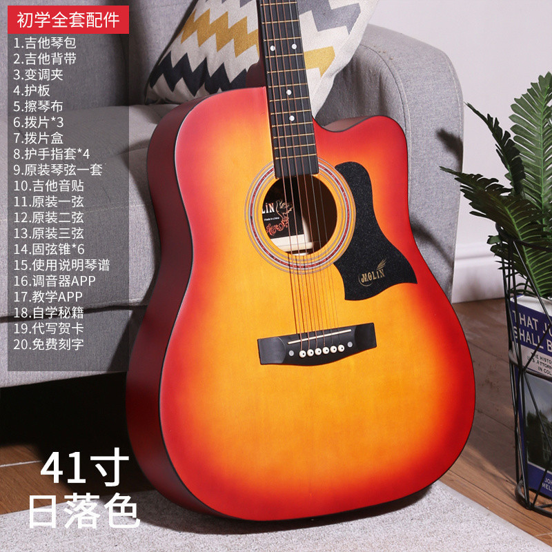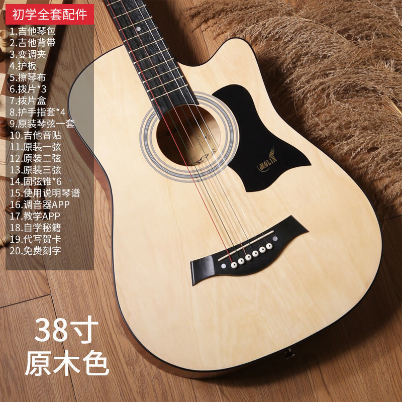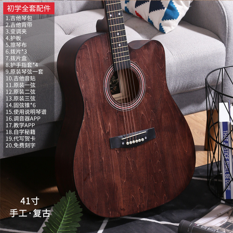• [밝은 연주 수준] 41inch - 나무 색상 - [일렉트릭 박스 기타] 액세서리 + 교재 + 튜너 풀 세트