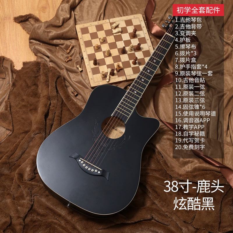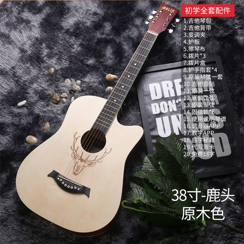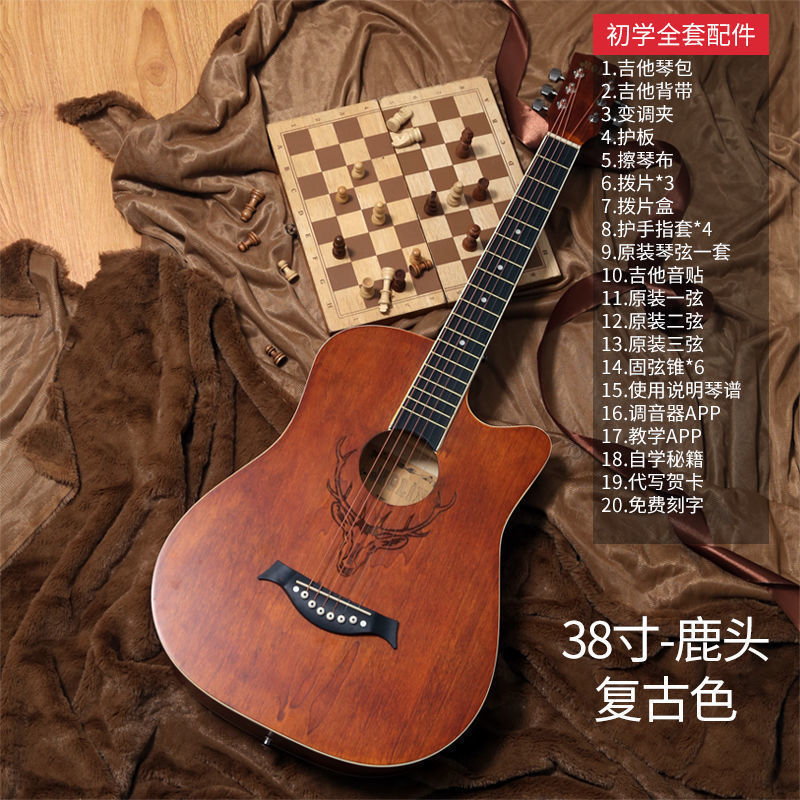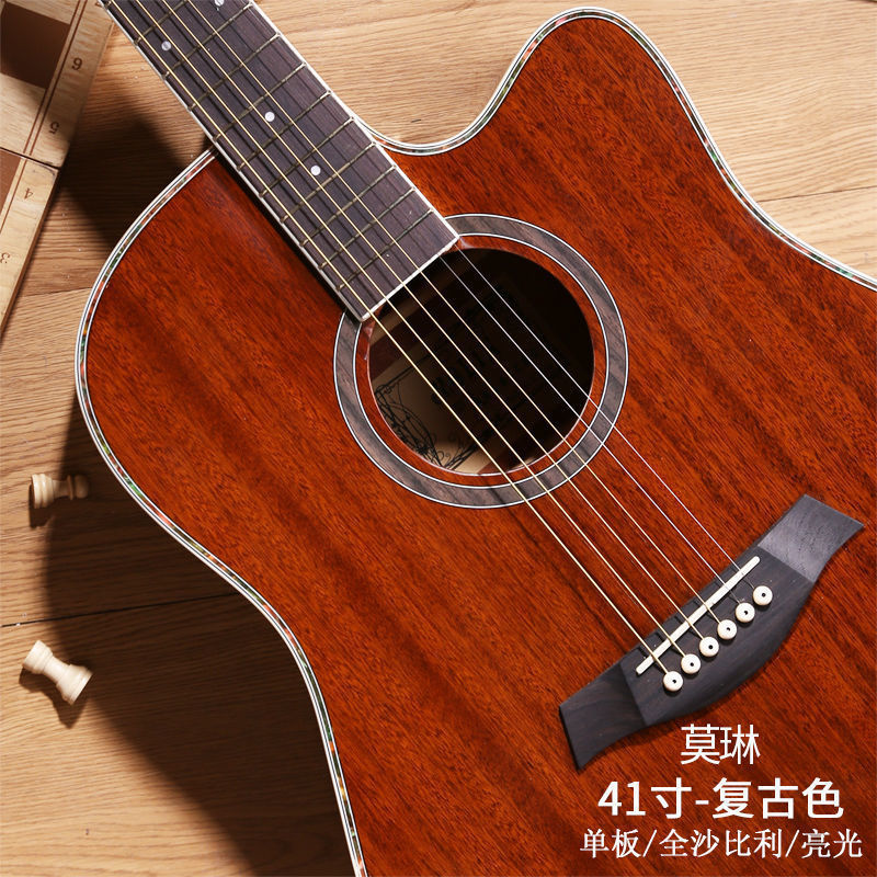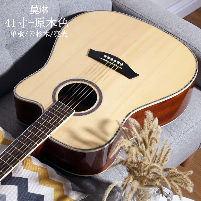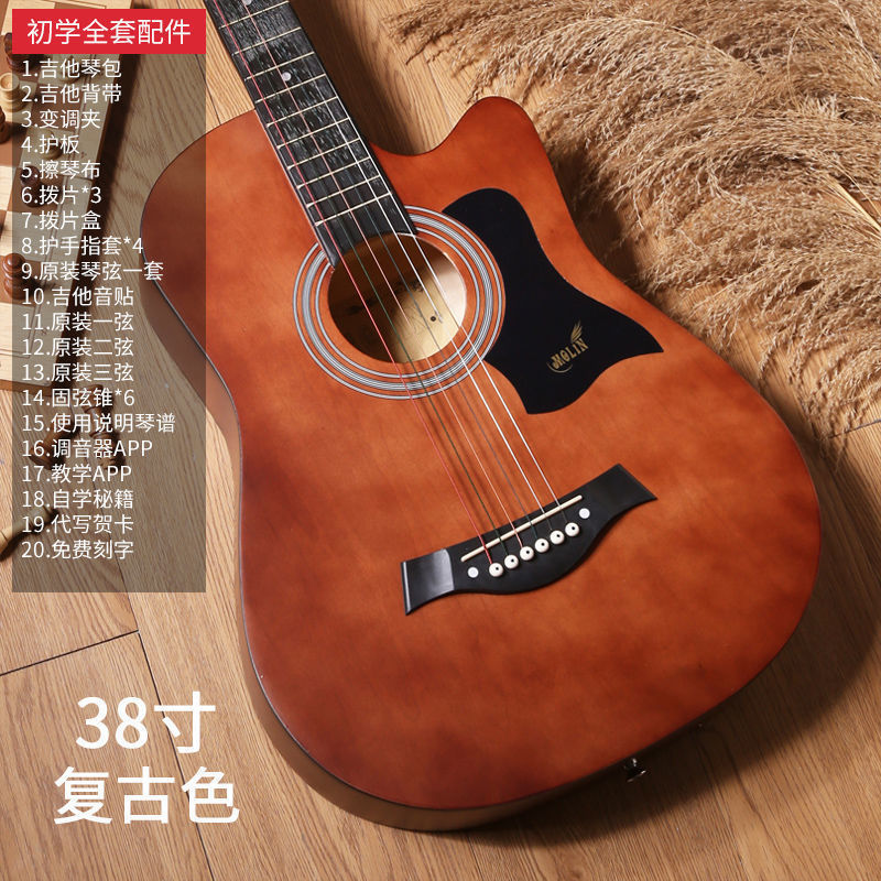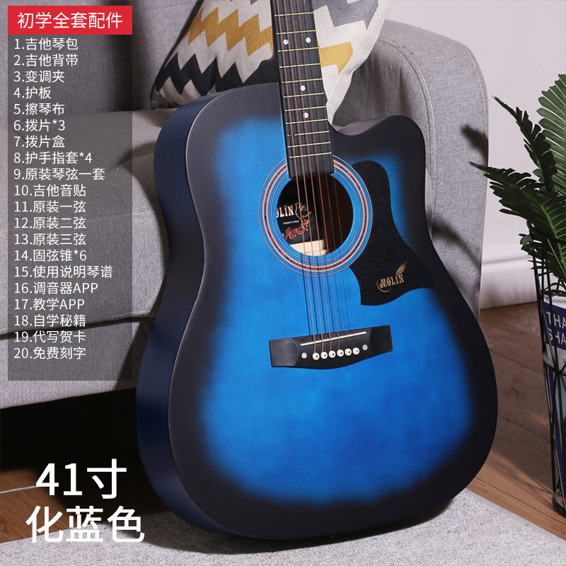 • [밝은 연주 수준] 41inch - 나무 색상 - [일렉트릭 박스 기타] 액세서리 + 교재 + 튜너 풀 세트