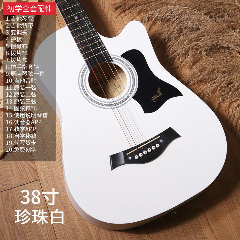 • 38inch -A급 단판-펄 화이트-[일렉트릭 박스 기타] 액세서리 풀세트 + 교재 + 튜너