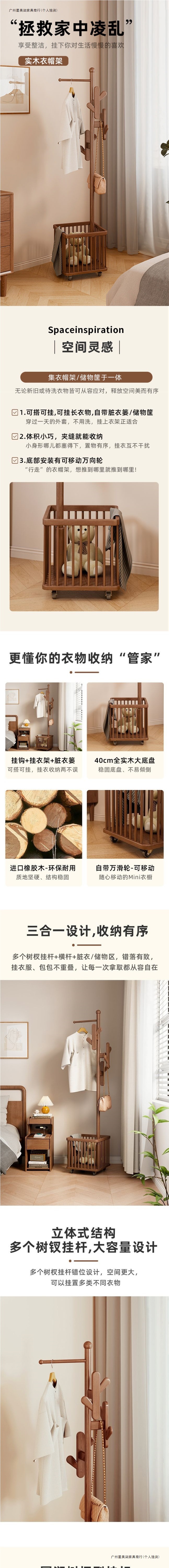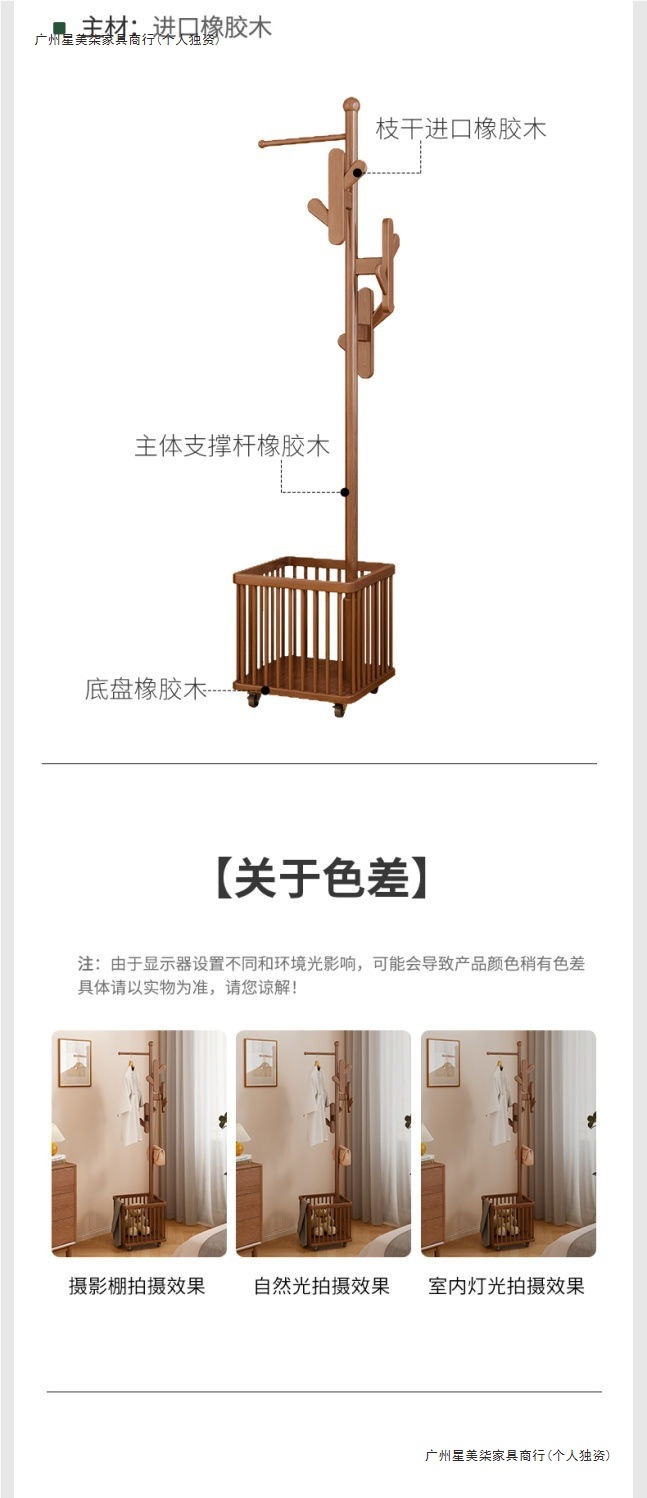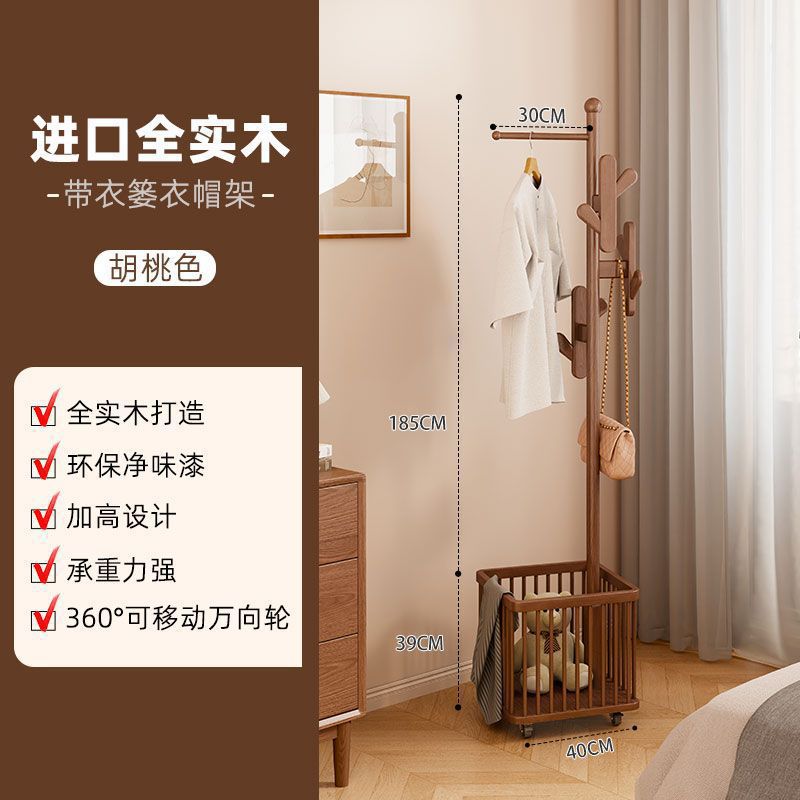 단단한 나무 옷걸이, 바닥 옷걸이, 침실 이동식 가정용 더러운 옷 바구니, 옷걸이, 다기능 가방 걸이스토어 가기